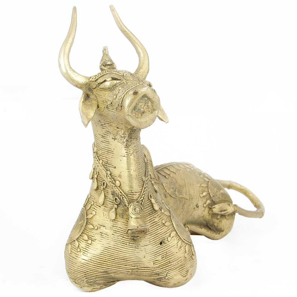 Nandi Bull Statue 6 Metal Figurine Golden Dhokra Tribal Art Sculpture Home and Office Decor.