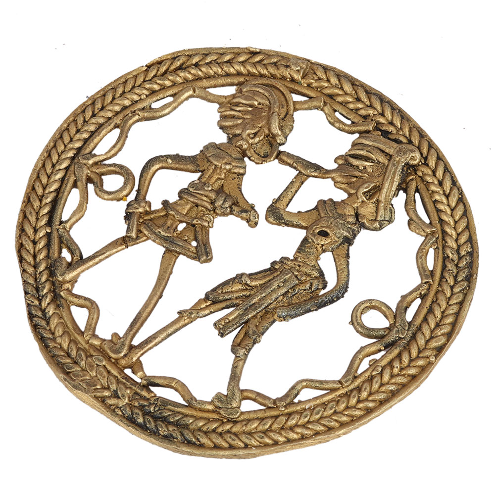 Brass Dhokra Round Wall Hanging Tribal Couple With Rope Design Border .Weddings , anniversary, house warming, office and hotel decoration, souvenir and special gift for your near and dear ones on Diwali, Christmas and other new year.