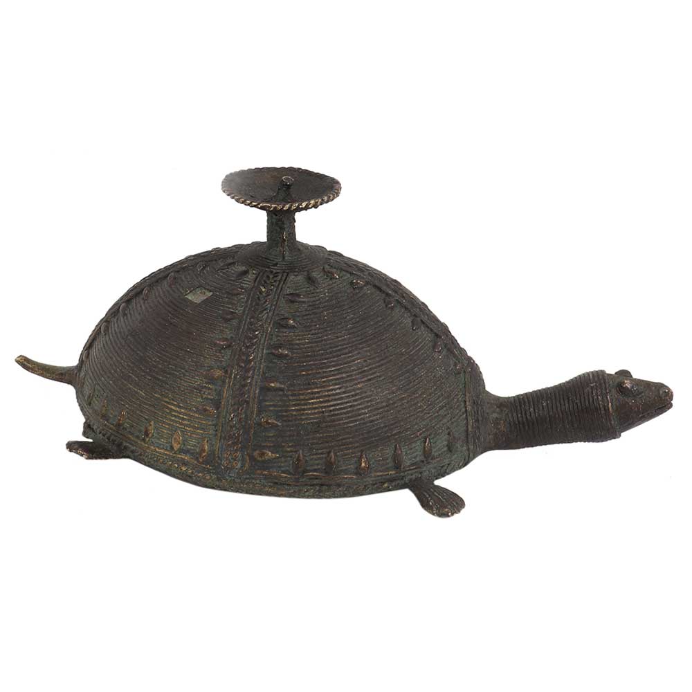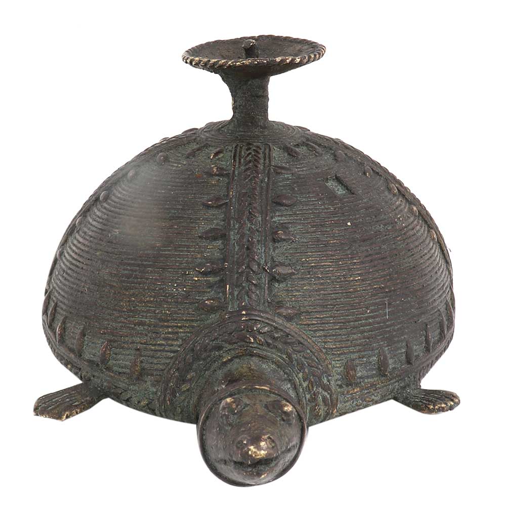 Whether it is lightning candles for birthday part or anniversary party or just to lighten up the atmosphere in the room this brass dhokra Turtle candle stand makes the most unique of all collectables you can probably own.
