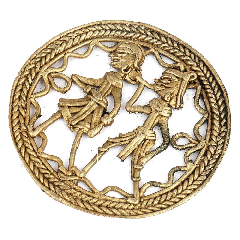 Brass Dhokra Wall Art Of Tribal Dancing Couple shows two figurines in the frame one is a tribal lady and the other is a male . This wall painting looks lovely in walls of your living room, bedroom, corridor, reception area. Gift it to near and dear ones ,corporate gift or a souvenir.