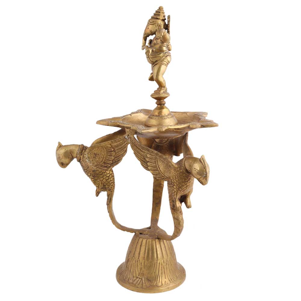 Brass Diya Dancing Ganesha On Three Peacock Stand adds an element of heritage to your home and an example of exquisite craftsmanship of indian tradition. Diwali decoration, wedding decoration, stage decoration, gift for your loved ones.