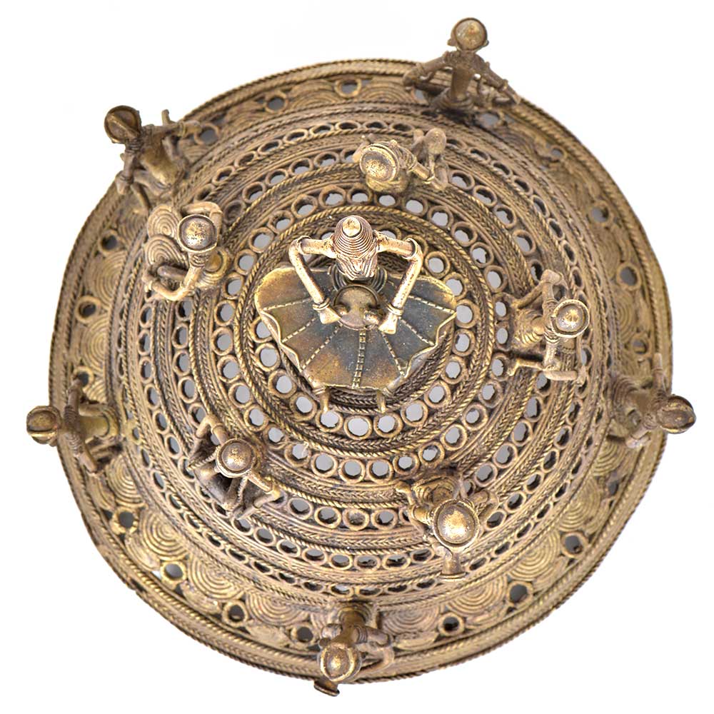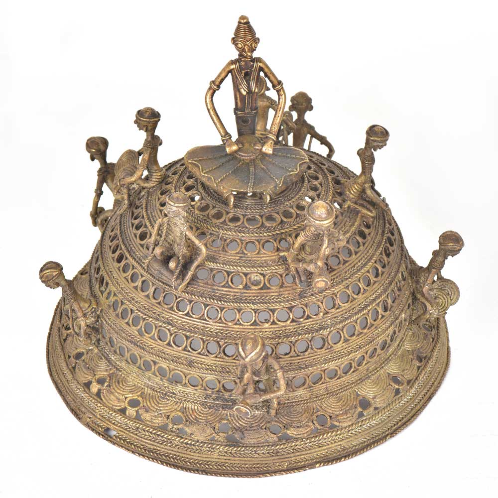 Traditional handmade dokra decorative used to beautify the interiors and suits all traditional or vintage type of interiorss. It is made of brass and further beutified with tiny tribal musicias along withh the engraved pattern . This is an amazining decorating item that can be gifted to family and frience .