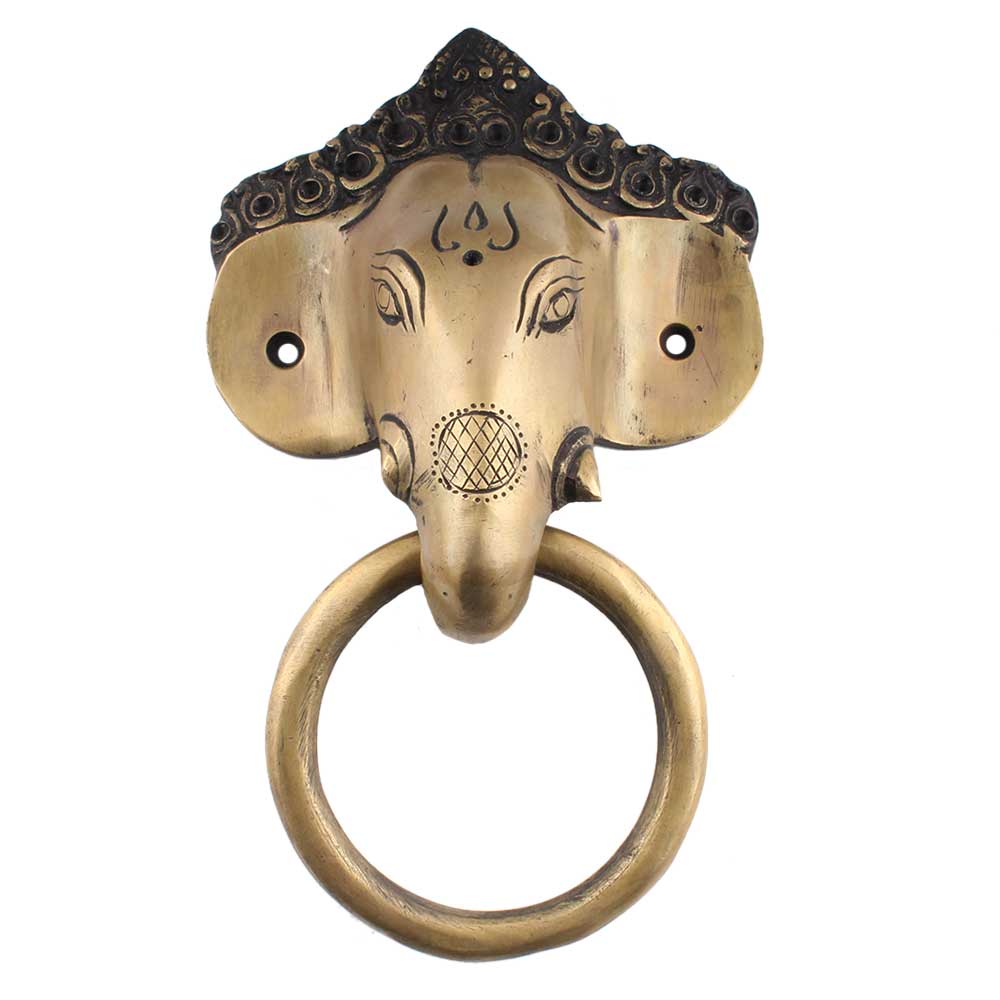 Brass Elephant Head Ganpati Face Towel Holder has a ring through its twisted trunk in realistic detail. You can hang towels , napkins and also small pots and planter in the ring and decorate your lawn, foyer and reception area. Also a great gifting option.