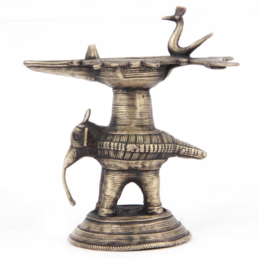 The Deep Cup Can Be Filled with Oil and Light a Cotton Wick. Diyas/ Oil Lamps are Considered Auspicious as in Hindu Religion. It is Detailed with Elephant and Peacock Animals with Beautiful Details.
