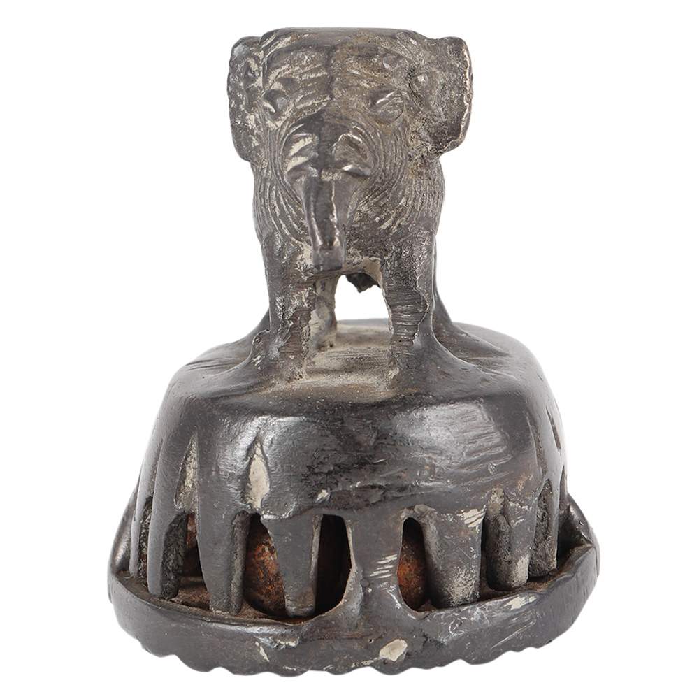 This was usually used among women when bathing to wash their foot, which was driven primarily by being barefoot. It really is made of cast brass and consists of a platform with punctured mesh work and a rustic, chipped base with an ornamental cast figure usually an animal  that serves as a handle. Tiny stones or metallic pellets are placed within the pedestal, which produces a noise when it is used to alert others in the area that women are bathing around.
