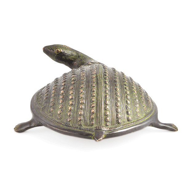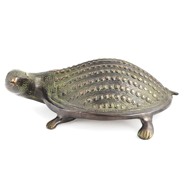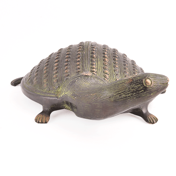 Handcrafted by Expert Artisans This Brass Turtle has a Long Neck with a Beautiful Embossed Design on Its Back. Keeping a Turtle in Salt Water Energizes the Dark Areas of the House and Ensures Good Luck and Prosperity.