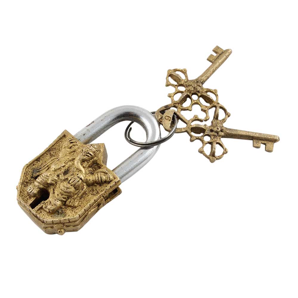 Brass Engraving Ganesha Idol Sculpture Pad Lock With Keys in Pair makes it an exclusive decorative product to add an antique look to your home, office, school ,hotels, gym, clubs, restaurant doors. Wedding gift, birthday gift and souvenir.