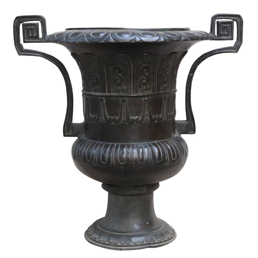 This solid European style planter urn shaped with side handles and engraved design can be utilised for patio use, indoor or outdoor plant culture, and seedling germination. These flower pots have improved horticulture since they make it possible to move plants from outside to interior spaces and vice versa.