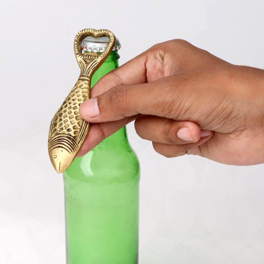 The Brass Fish Bottle Opener is designed for user-friendliness. Its ergonomic shape provides a comfortable grip for a smooth bottle-opening experience. Additionally, the brass material is easy to clean and maintain, ensuring that this opener remains a stylish and functional addition to your collection.