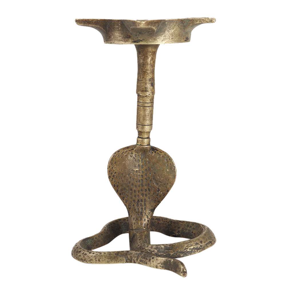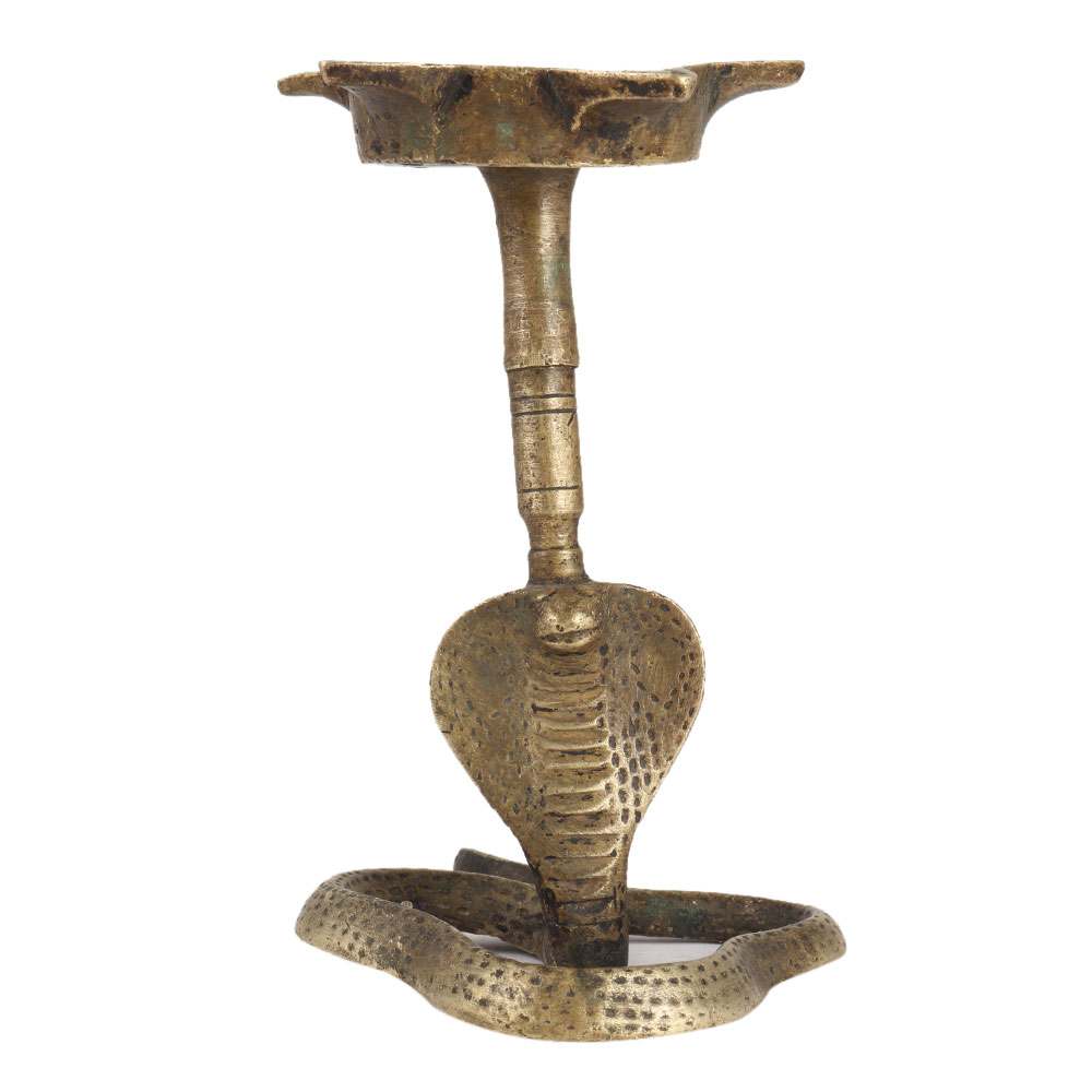 Gorgeous Brass Divine Oil lamp that can also be used as novelty candle holders. Both are in the shape of a cobra snake and have been beautifully hand engraved with various patterns/designs highlighted with dark finish. They display very well in the photos and would draw a lot of attention.