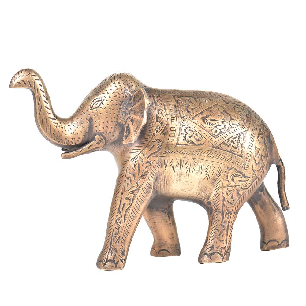 This lovely brass elephant figurine with detailed engravings all over the statue is perfect for your home decor, as a bedroom accent, or adorning your bookshelf. What a perfectly large decor piece perfect for a kids room or nursery too!Keeping Brass elephant with a raised trunk brings good luck and prosperity.