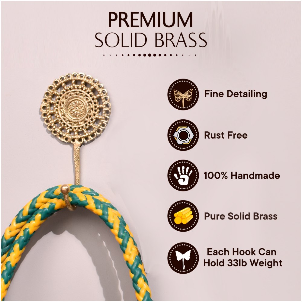 The Brass French Cutwork Round Single Hook isn't just a functional piece; it's an artistic accent for your home. Use it to add a touch of vintage appeal to your hallway, bathroom, or bedroom.