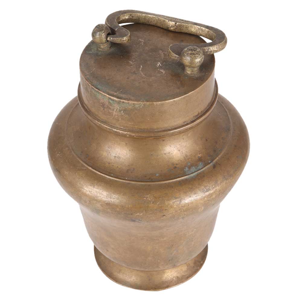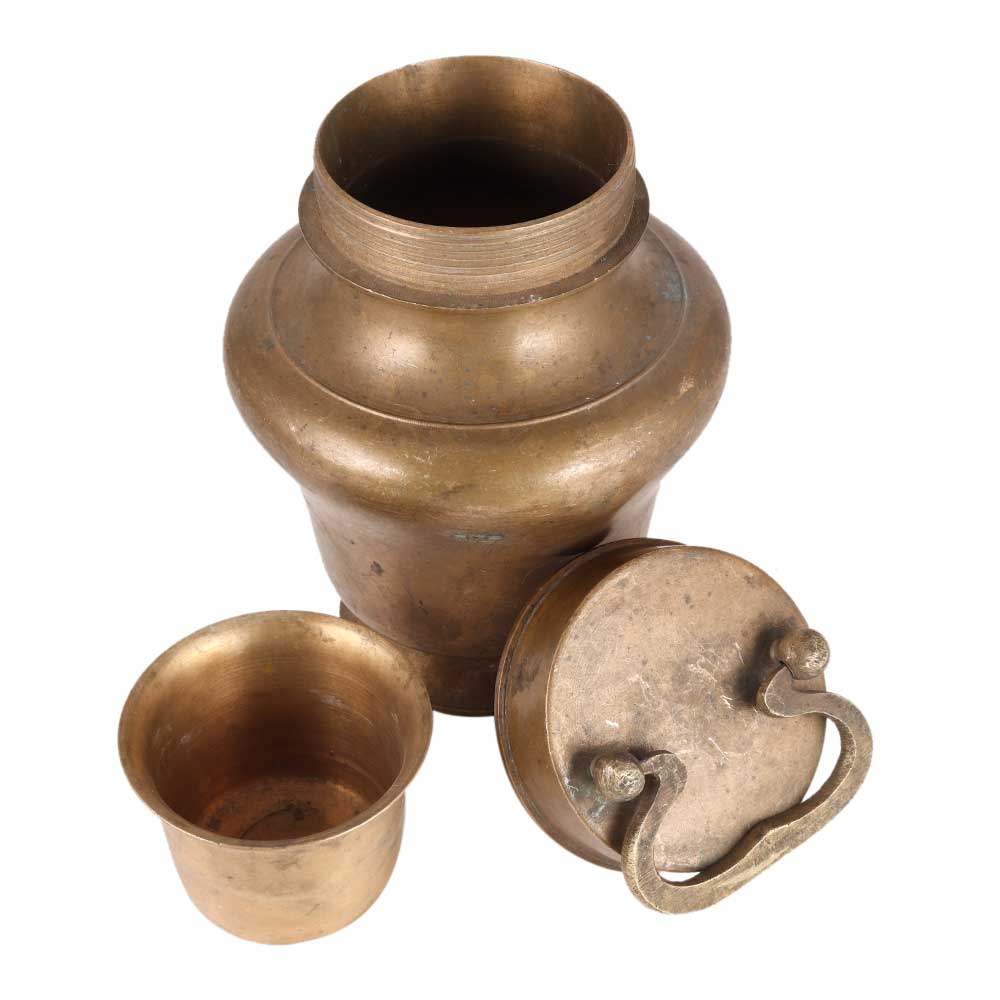 This solid kamandal or gangajali pot has a handle for easy picking up. The handmade Kamandal pot is constructed of brass and has a lovely finish. This Ganga Jali pot or Kamandal is used to hold Gangajal, Water, Grain, or other sacred liquids. It can do prayers and rituals on a regular basis.