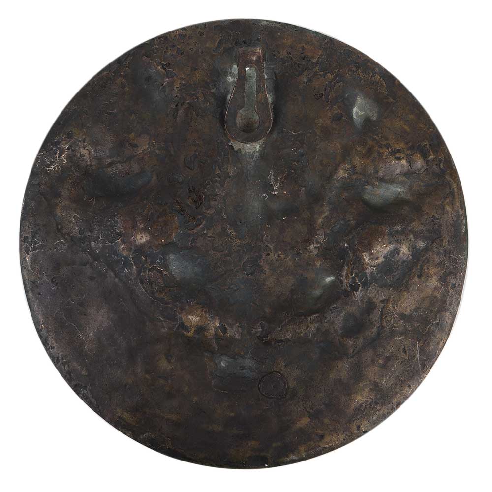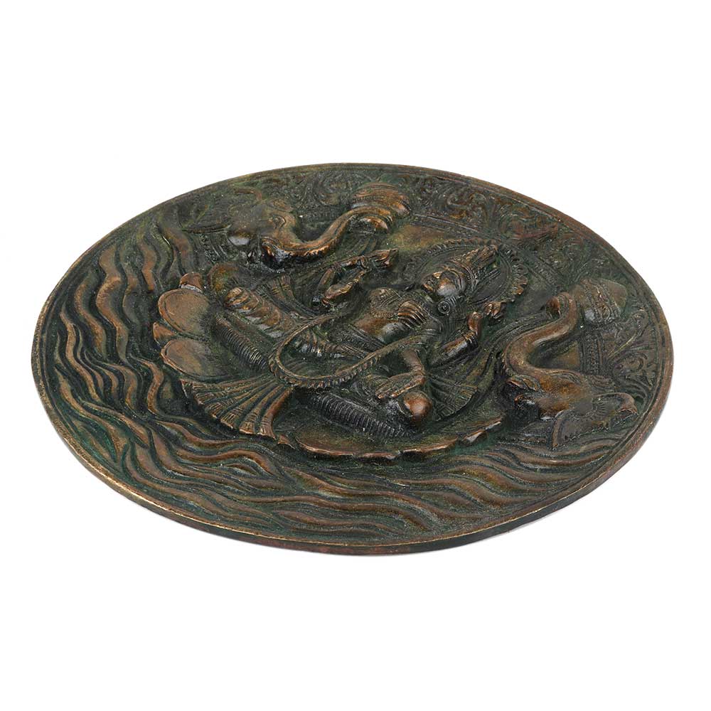 Handmade Brass Plate Embossed with Goddess Laxmi in the Center Sitting on a Lotus Flower with Two Elephants in the Background. This Image is Also Known as Gajalaxmi. This Brass Plate Serves as a Great Decorative Item a Gift or a Wall Hanging. Wedding gift, Diwali gift and house warming gift.