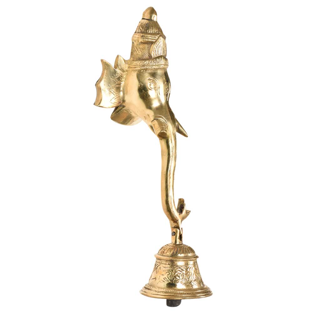 Lovely handmade brass wall hanging with elephant head with a bell hanging to its trunk. Switch off your electric door bell and opt for this old-style bell to ring in your guests and relatives.