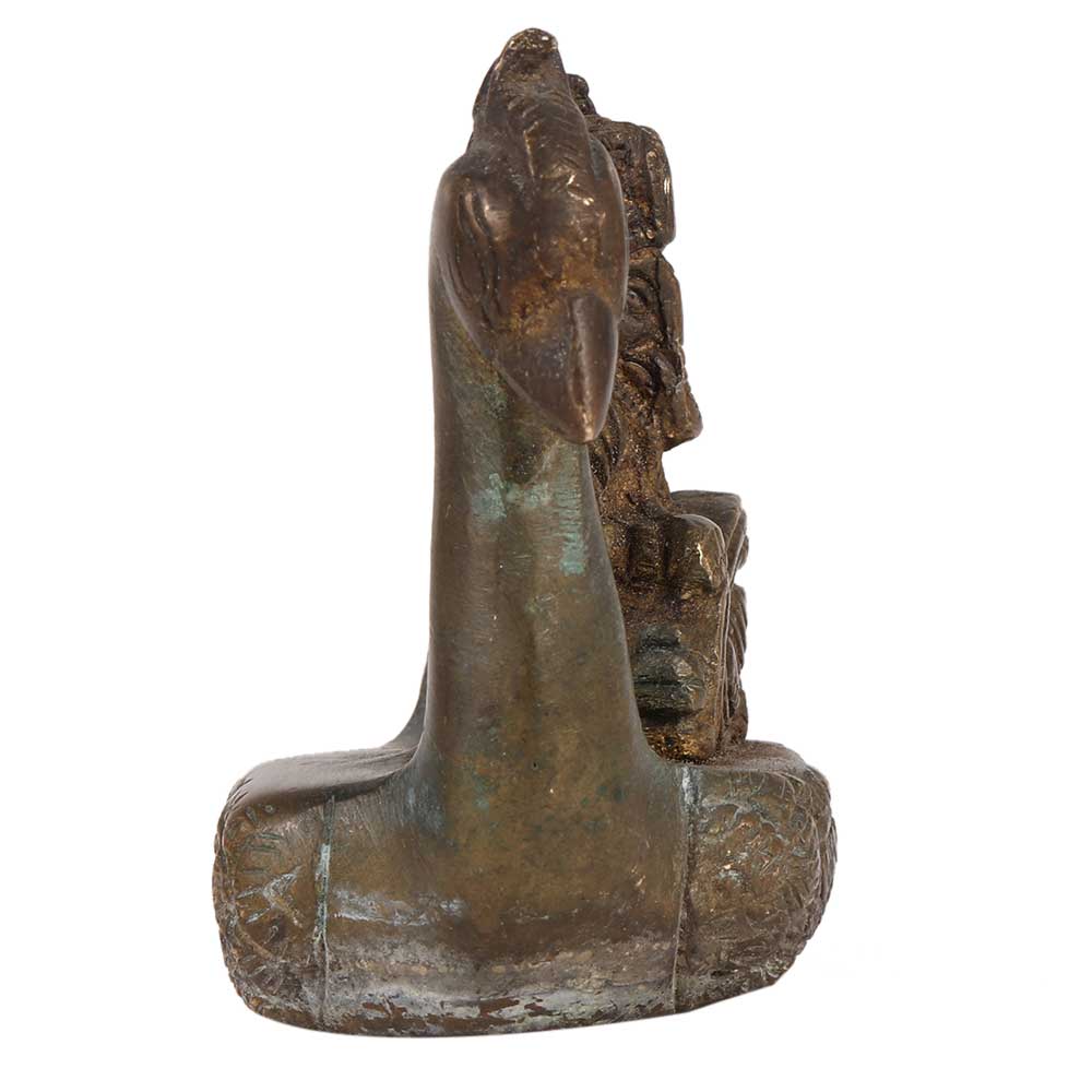 This lovely statue of lord Ganesha sitting on peacock boat and writing a book is constructed of brass. It features richly detailed hand sculpting by highly talented craftspeople. A fantastic gift for inauguration, corporate gifts, homecoming gifts, and festivities, among other occasions.