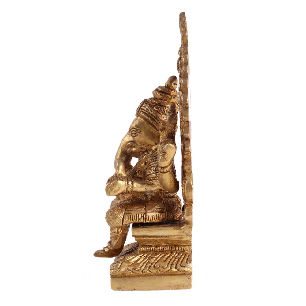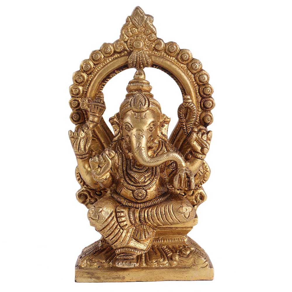 Beautiful Lord Ganesha Idol Made of Brass depicts the lord's grace and glory. This Idol is best suited for use in a home temple or as a gift on auspicious occasions such as a housewarming ceremony. Lord Ganesha is regarded as the God with the most knowledge and wisdom. He is the demolisher of barriers and difficulties. He is widely and affectionately known as the Elephant God throughout the world. He is invoked and requested for blessings before the start of all good things. Bring this Ganesha idol home to receive his blessings and protection.