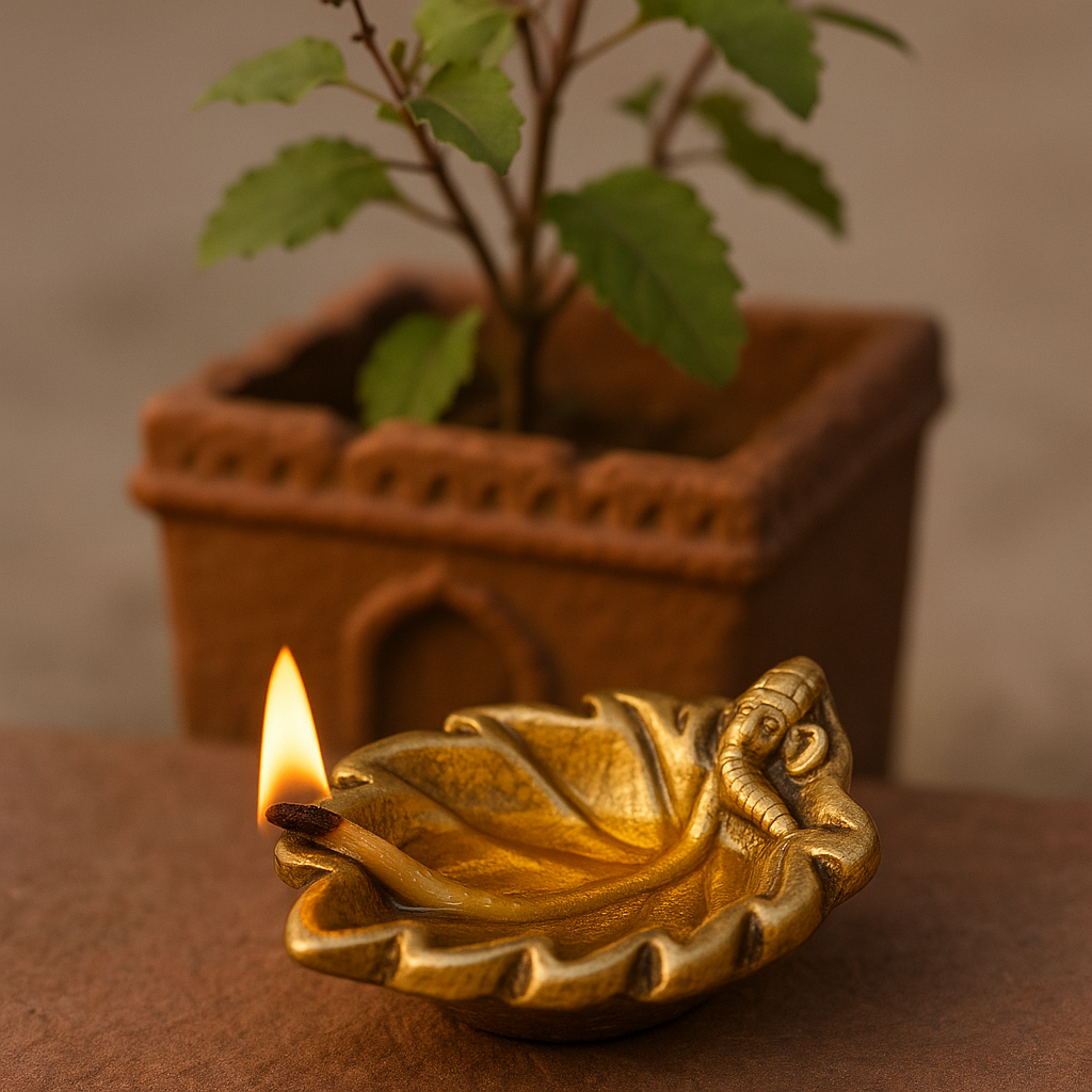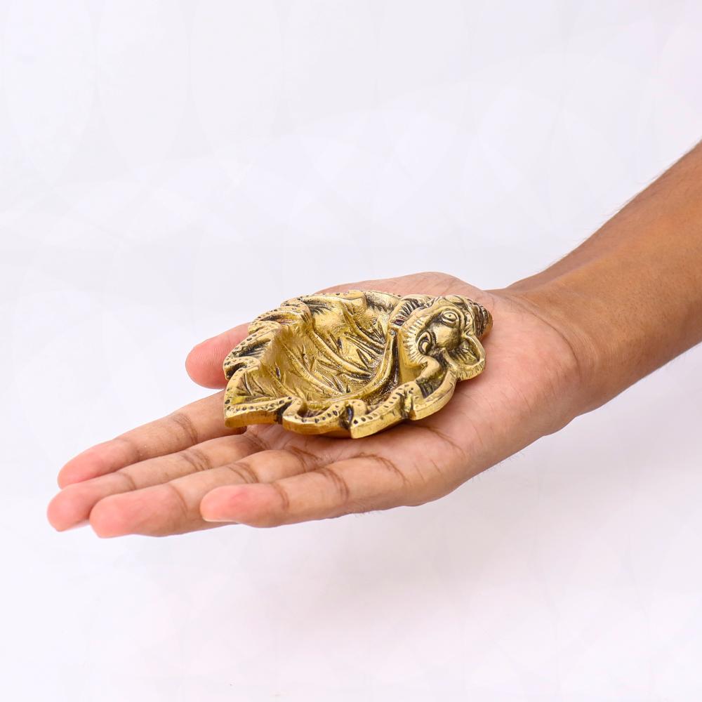 Brass Ganpati And Leaf Oil Lamp Diya is an ideal worship lamp for deity and idols, beautiful gift for Diwali, house warming and other Occasions and Ceremonies, an ideal showpiece for your home interiors. Gift for your near and dear ones.