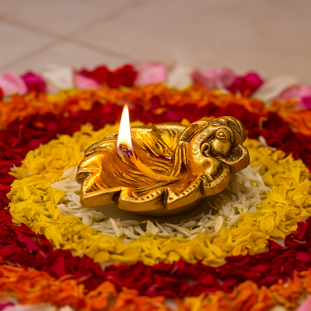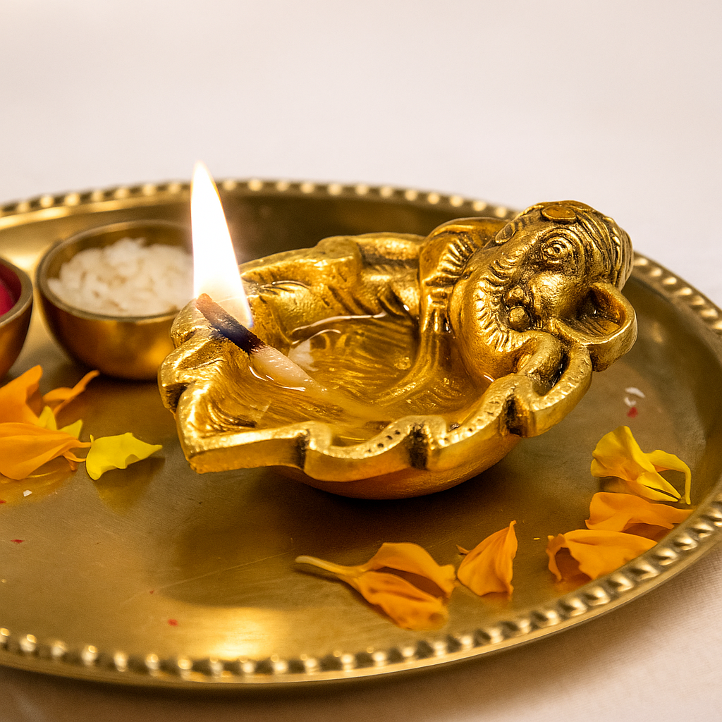 What is the significance of Ganpati on the diya?Lord Ganesha brings wisdom, good fortune, and removes obstacles, making this diya both symbolic and functional.