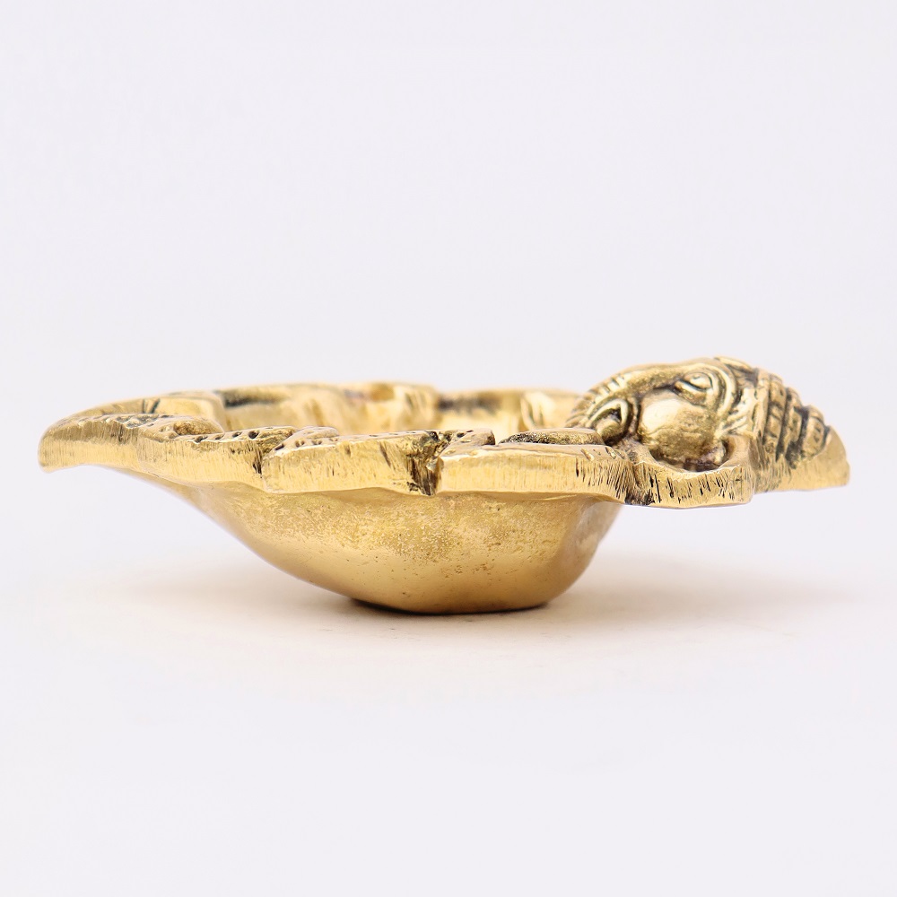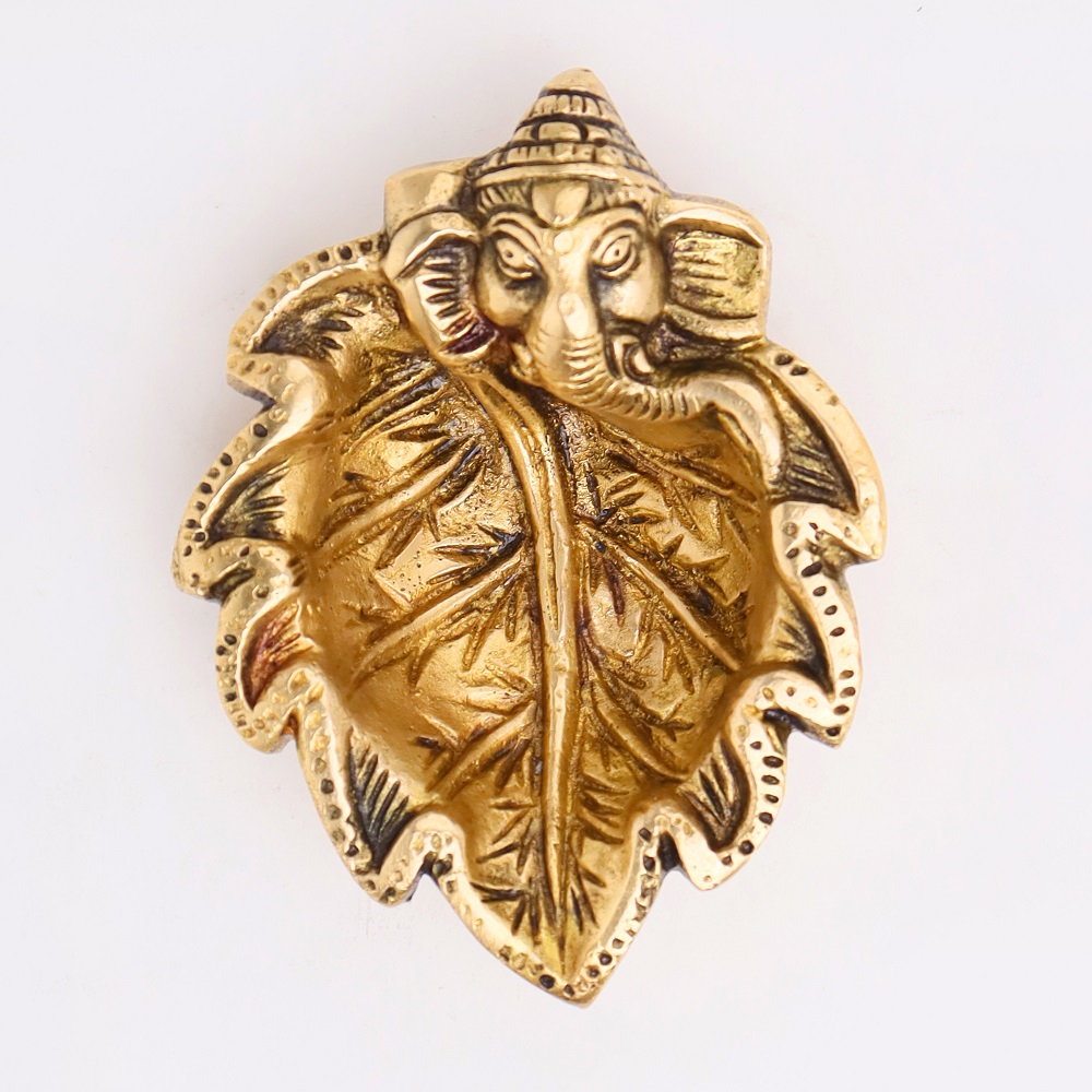 Illuminate your home with divine blessings through the Brass Ganpati on Leaf Ritual Oil Lamp. This diya combines the sacred presence of Lord Ganesha with the natural symbolism of a leaf, making it a powerful addition to your pooja rituals and festive celebrations.