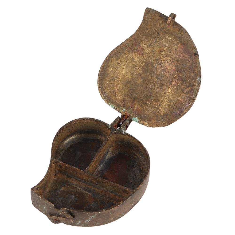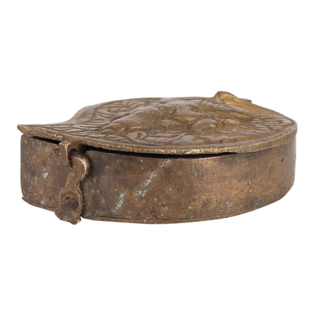 Ethnic Brass from India tika box with a Figurine of Ganesha for vermilion, kumkum, as a collectible, saffron powder box, sadnal powder box and traditional Indian powder boxes. dresser table décor, vintage church decoration and hindu temple accessory. An ideal gift for your near and dear ones.Â