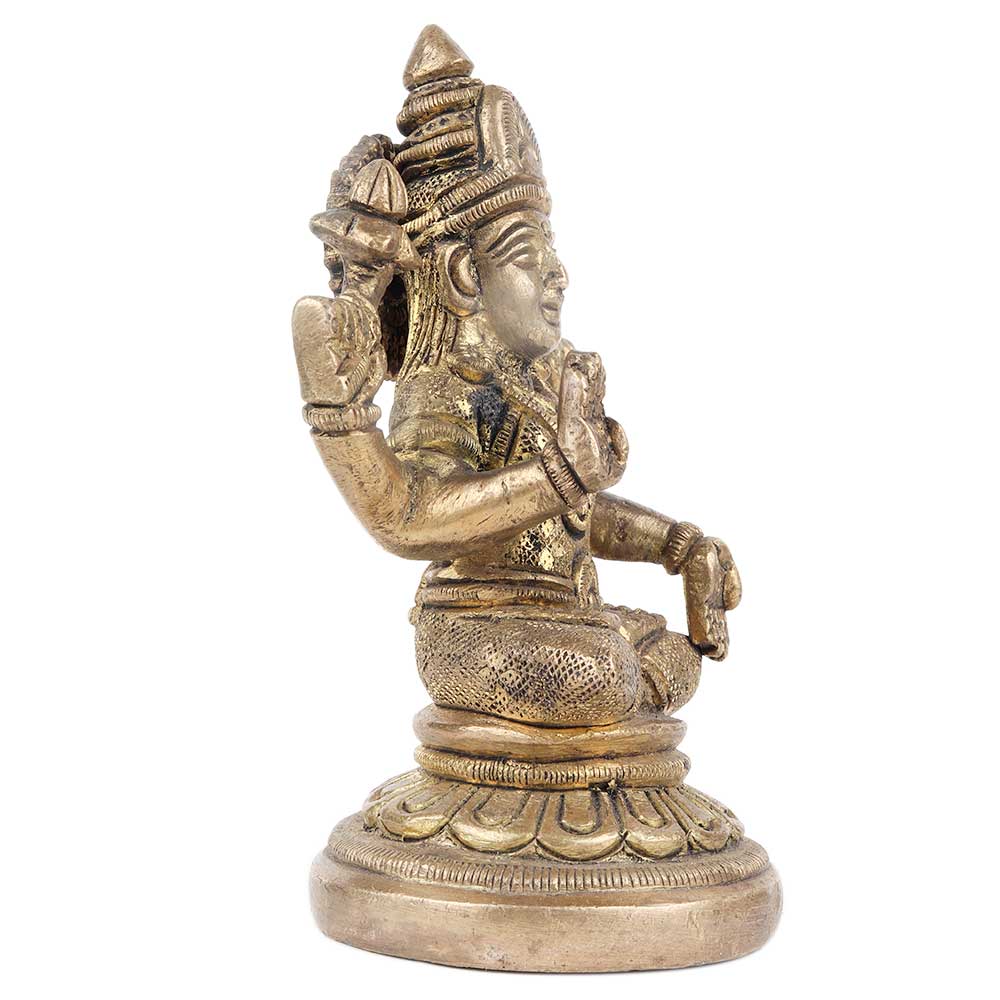 Brass Goddess Laxmi in seating position on a lotus base with four hands adorned with jewelry and a big smile. Use it as a showpiece in your living room or by your bedside . Gift it to your near and dear ones n diwali, New year, birthday, Or house warming. You can also use it or worship in your personal temple or other religious places.