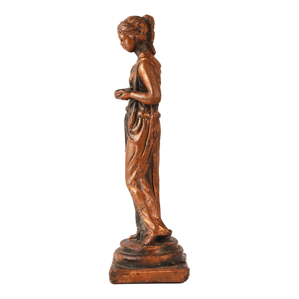 The brass Greek goddess statue, also known as the Griechische göttin world famous statue, is a popular decorative item that is inspired by ancient Greek art. It is a brass statue that portrays a Greek goddess, often depicted with flowing robes, a crown, and other symbols that represent her divinity and power. These statue for home decor are often used as home decor, as well as in hotels, museums, and other public spaces. They are appreciated for their artistic value and are also believed to bring good luck and positive energy to the space they are placed in. The Griechische göttin statue decor is a testament to the enduring influence of Greek mythology and art on contemporary culture. his beautiful reproduction statue of Hebe with a cup and pitcher is wonderfully detailed, and is finished in bronze paint.