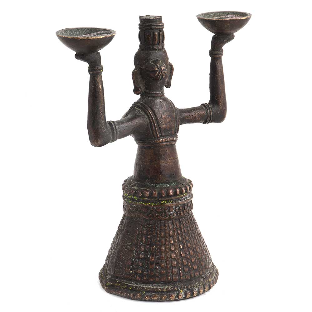 Brass Gujarat Tribal Women Holding Two Bowls Candle Holder used as a table display, home decoration, table display at home office, hotels and clubs, wedding gift, Christmas gift and house warming