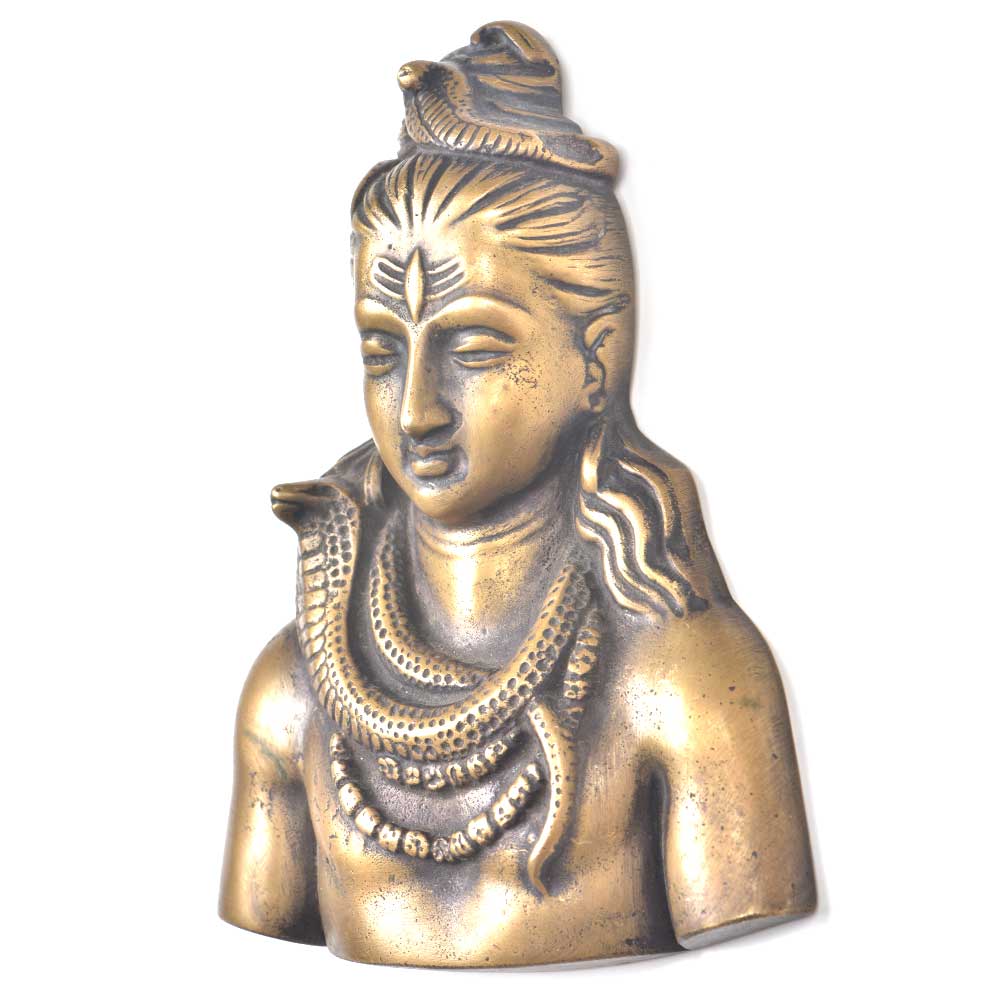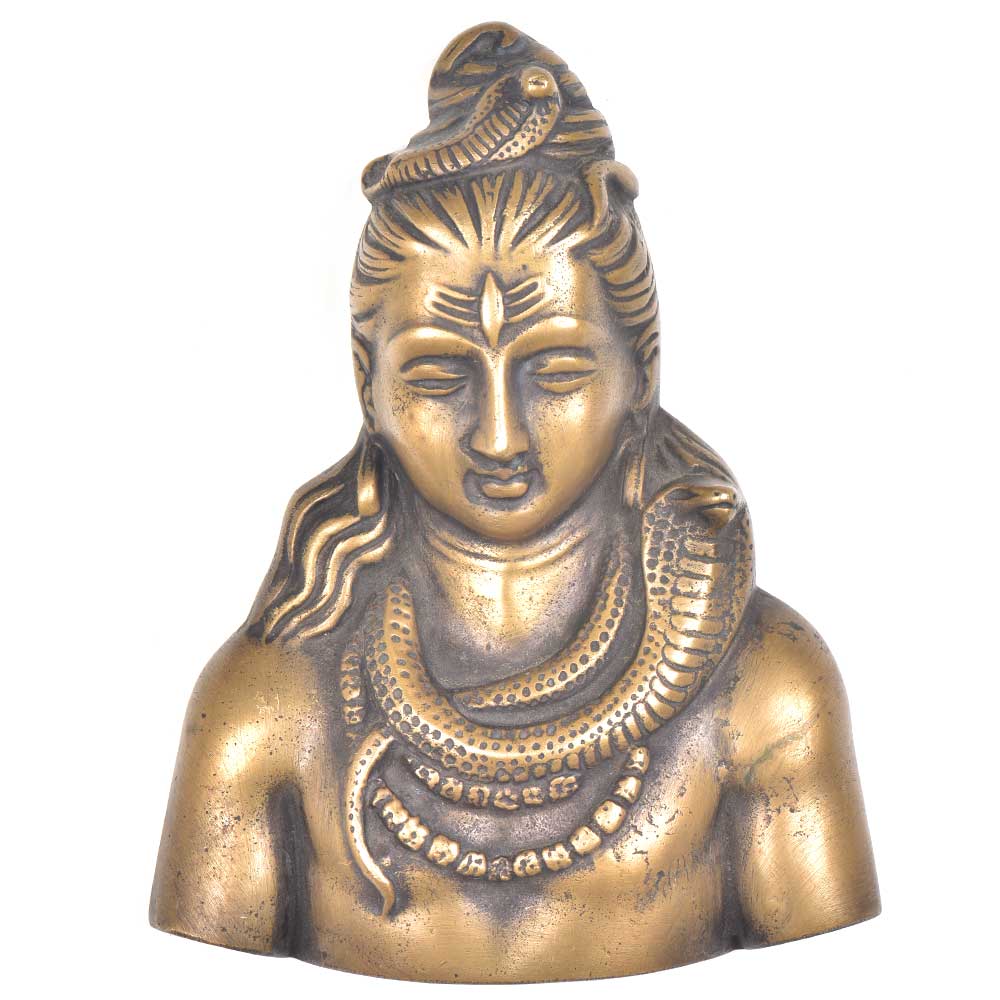 This is a beautiful handmade brass half body wall art of lord shiva with cobra around his neck. The face shows the lord in meditation and should be placed in the interiors of the house for peace and prosperity This is just a very spiritual and beautifully detailed wall art for decoration and gifting purpose.