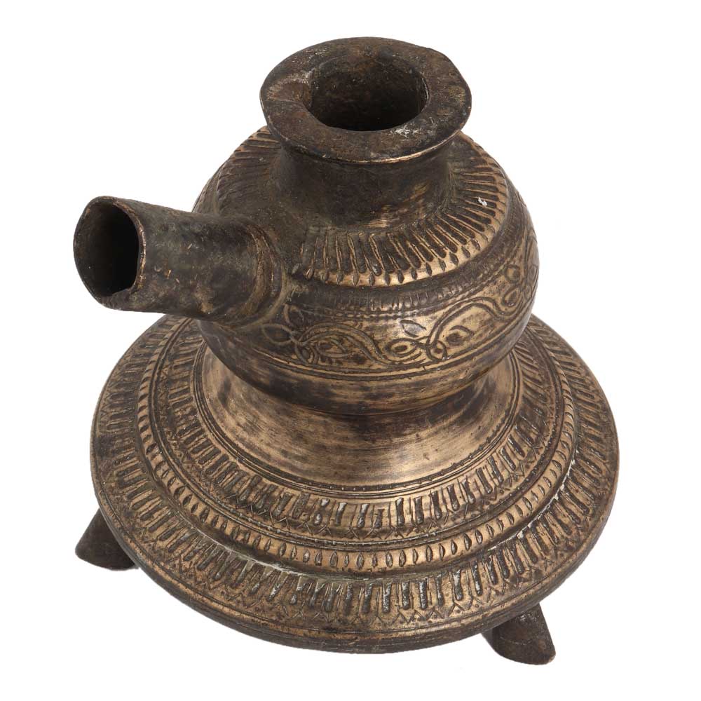 Brass Hand Carved Traditional Hookah Base Three Legs Fitted with the Easily Damaged or Mislaid Hose, Mouth Piece and Fire Tray Meant to Be the Water Holding Base. Use it as a decorative piece for your living room or guest room. traditional Indian Hookah Pot Hookah Base for Collection Decorative.