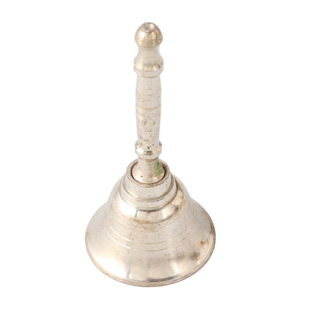 This silver-finished brass hand bell has a lovely appearance. Bell sounds are seen as lucky because they usher in the gods and drive out evil. The sound of a bell is believed to free the mind from running thoughts and increase openness. It is said that ringing bells while praying might assist one maintain mental focus and rein in their wandering thoughts. Make your home temple more beautiful by adding our gorgeous brass bell.