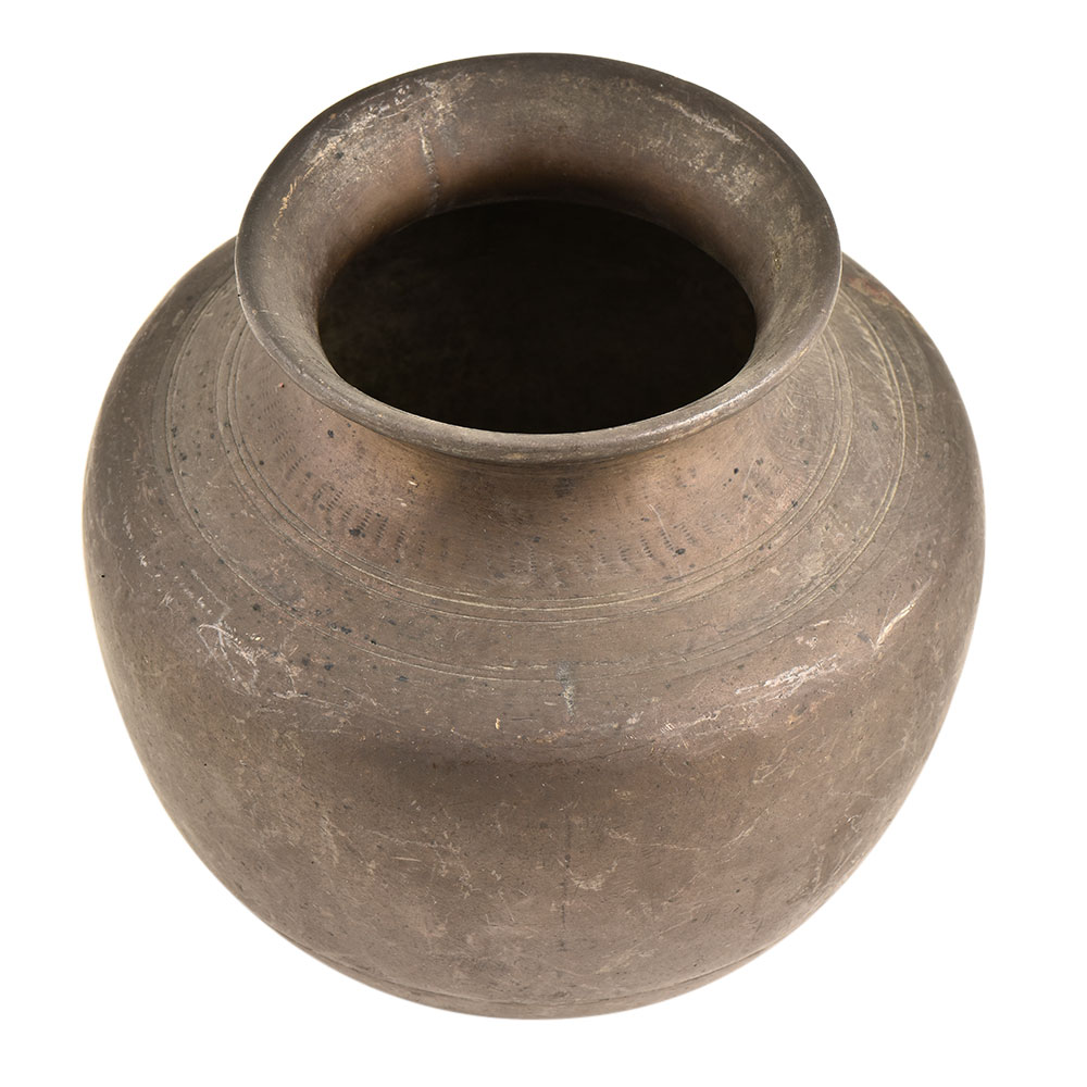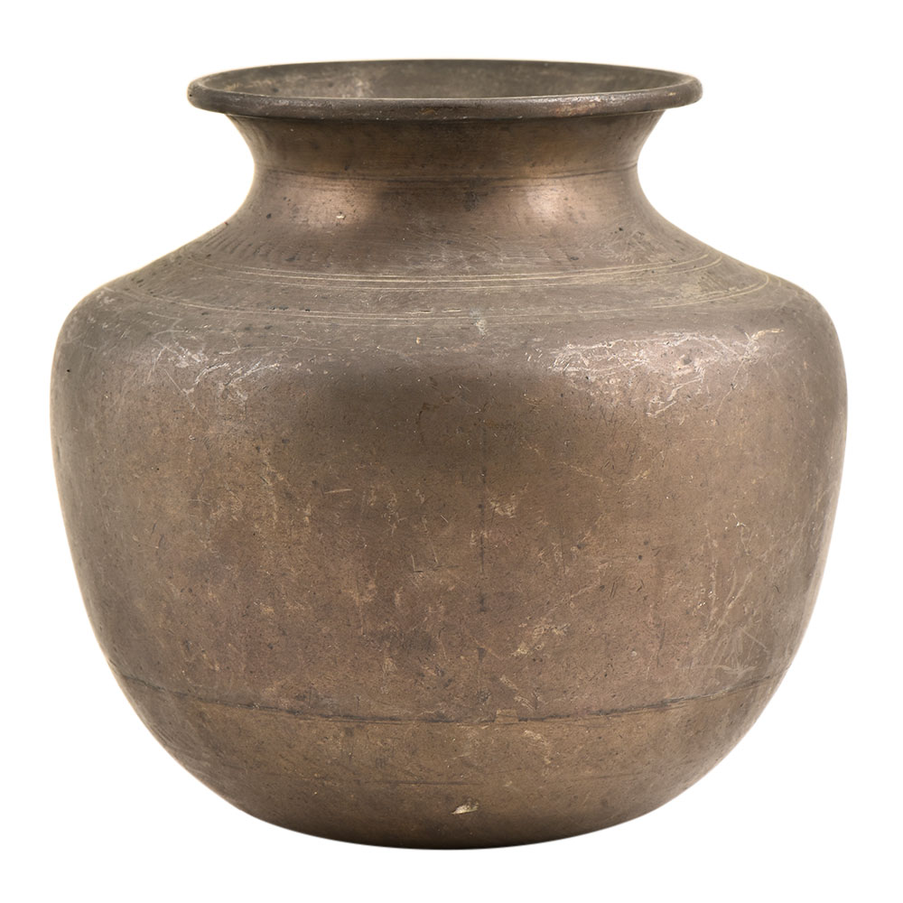 Plain looking water pot made of superior brass metal made by expert craftsmen of India using traditional methods. A very simple looking yet sturdy brass water pot used to store water and used in temples or other religious places. It is heavy as it is made of solid brass. Use as a collector’s item or gift it to family and friends and used as a decorative piece on the display shelf.