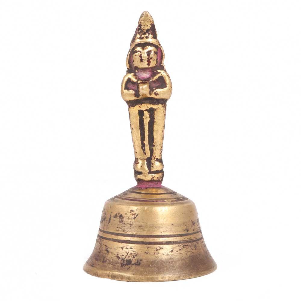 Brass handheld worship bell with deity finial is available in a variety of sizes and is commonly found in temples, churches, and homes. Diwali gift, new year gift, housewarming gift for your loved ones.