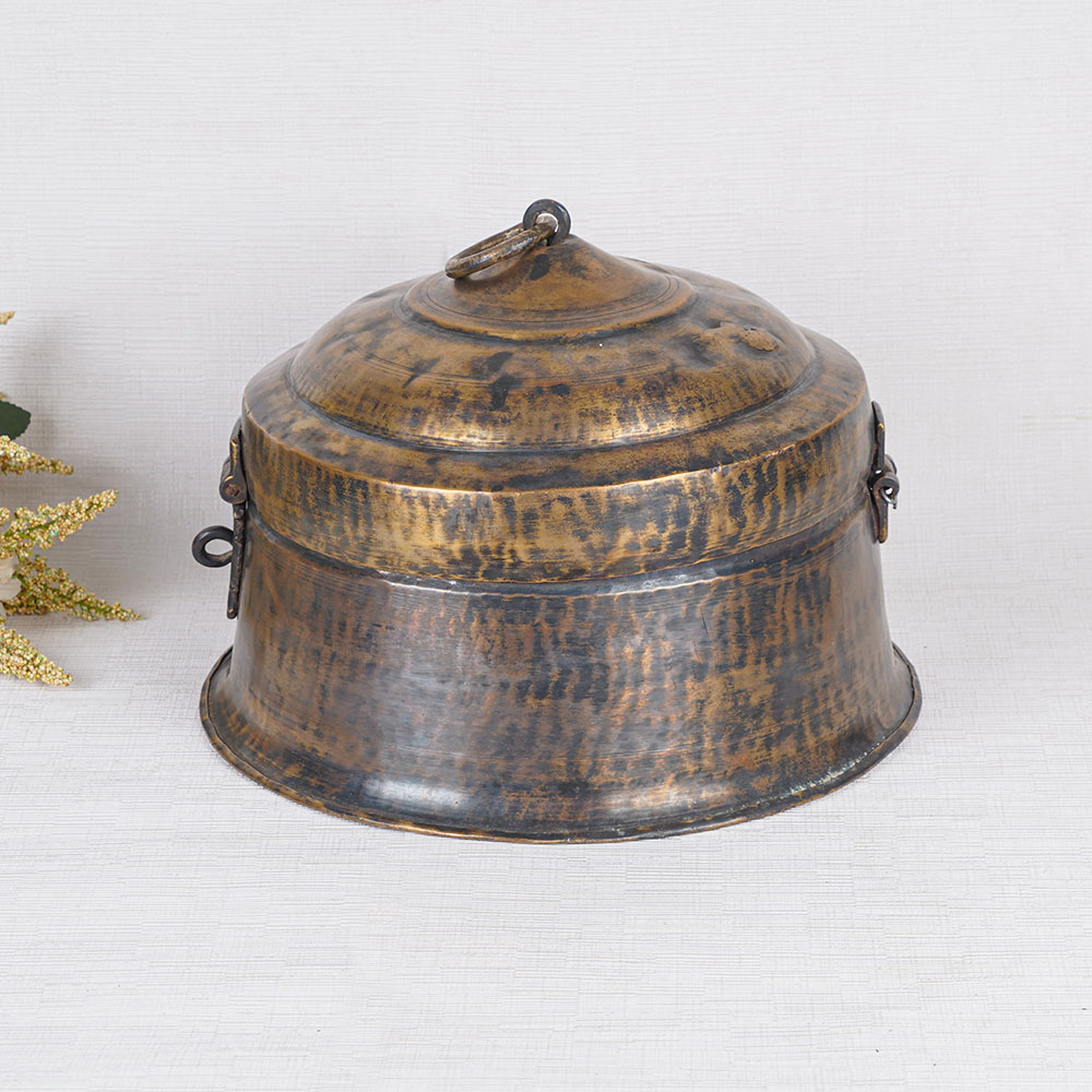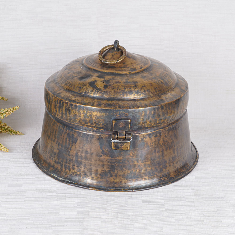 With its simple yet elegant design and a stunning brown finish, this jewelry box is a captivating piece that seamlessly combines functionality and aesthetics. The box features a convenient handle on the top, allowing for easy transport and practical usage to store precious jewelry and gemstones. Not only does this brass jewelry box serve as a perfect storage solution, but it also adds a touch of sophistication to any home or office decor. The antique finish exudes a timeless charm, making it a remarkable decorative piece that effortlessly catches the eye. Its secure latch ensures the safety of your cherished belongings. This remarkable brass jewelry box is not only suitable for personal use but also makes for a thoughtful gift for your loved ones on special or festive occasions. Furthermore, its allure is such that it can even be displayed in museums or exhibitions, attracting discerning customers with its beauty and craftsmanship. Elevate your jewelry collection and decor with our exquisite brass jewelry box, a true testament to artistry and elegance.