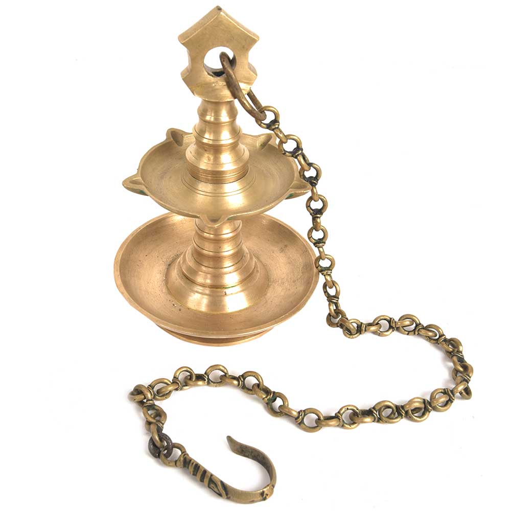 The Hanging Oil Lamp is Made of Brass and It is Handmade by the Skilled Artisans of India. The Hanging Oil Lamp has a Long Chain with a Hook to Hand It Easily. It can be Use for Gifting, Home Dacor Etc. and It will Give a Nice Look to the Room Where It Would Be Placed.