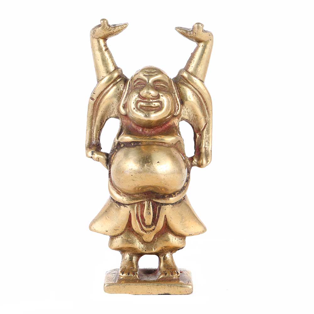 Decorate your interiors in a different way with this beautiful showpiece featuring a Laughing Buddha. It represents good health, happiness, prosperity, and longevity. They represent the Buddhist idea that a good life is indeed possible in this world. The statue depicts a Laughing Buddha standing with his hands in the air.
