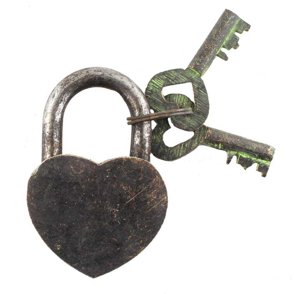 Brass Heart Shaped Lock and Keys In Pair With Patina with its remarkable patina finish makes it an exclusive decorative product to add an antique look to your home, office, school ,hotels, gym, clubs, restaurant doors. Wedding gift, birthday gift souvenir.