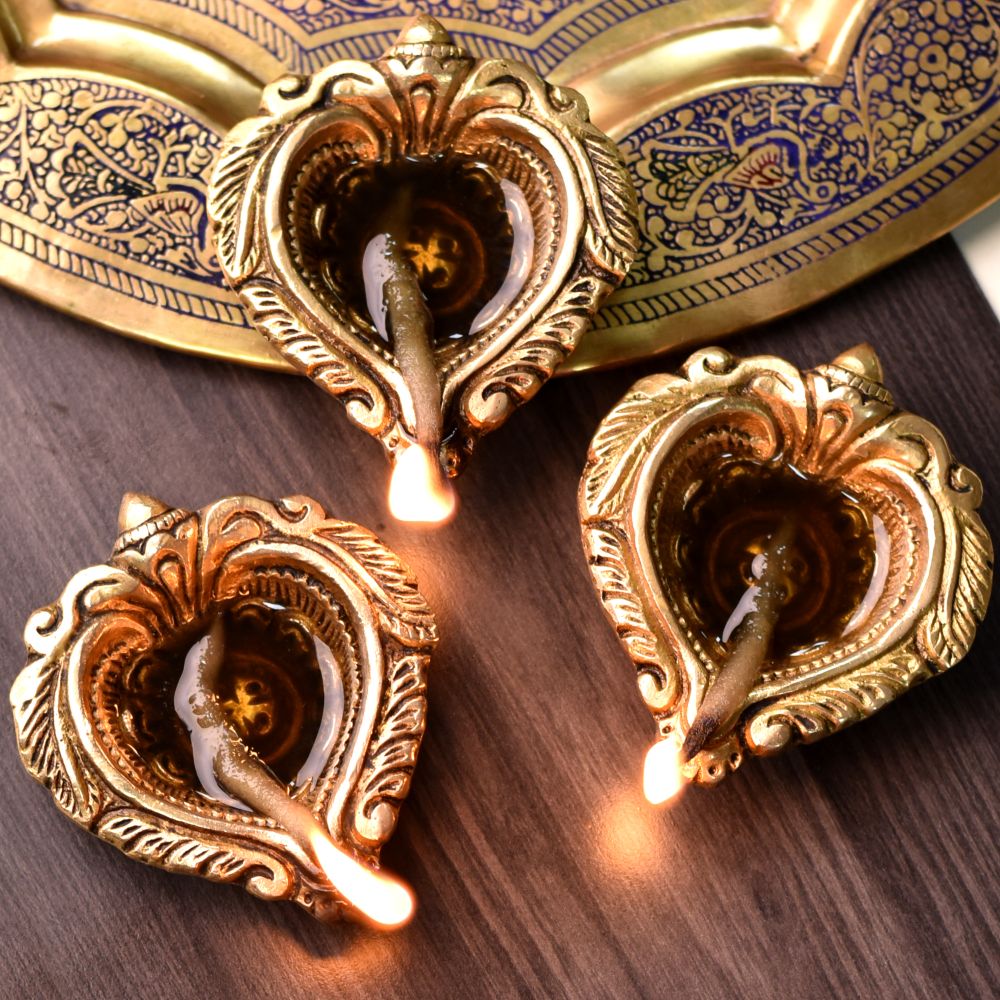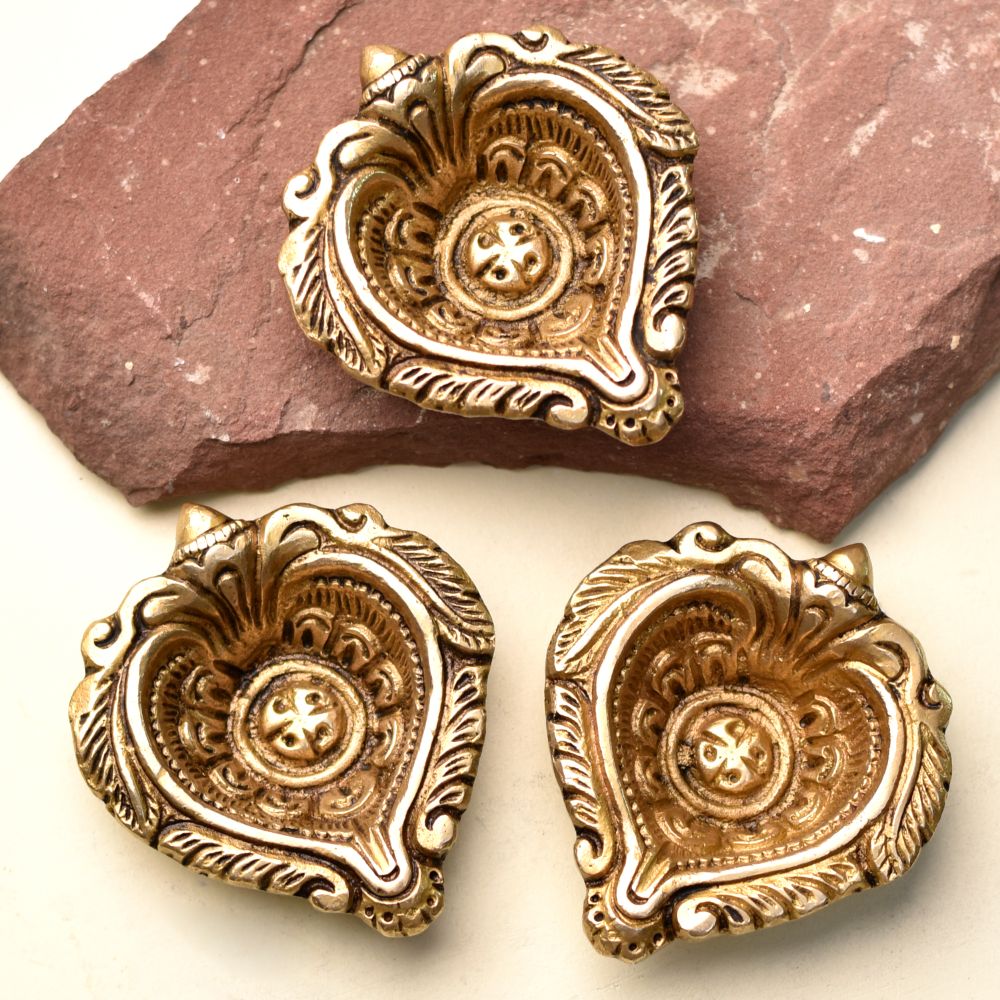 Celebrate light and devotion with this Brass Heart Shaped Oil Lamp Diya, a unique deepak symbolizing both spirituality and affection. Crafted from solid brass with a glowing golden finish, its intricate heart-shaped design adds charm to mandir rituals, Diwali décor, and sacred spaces. A perfect balance of tradition and artistry, this diya embodies warmth, purity, and timeless beauty.