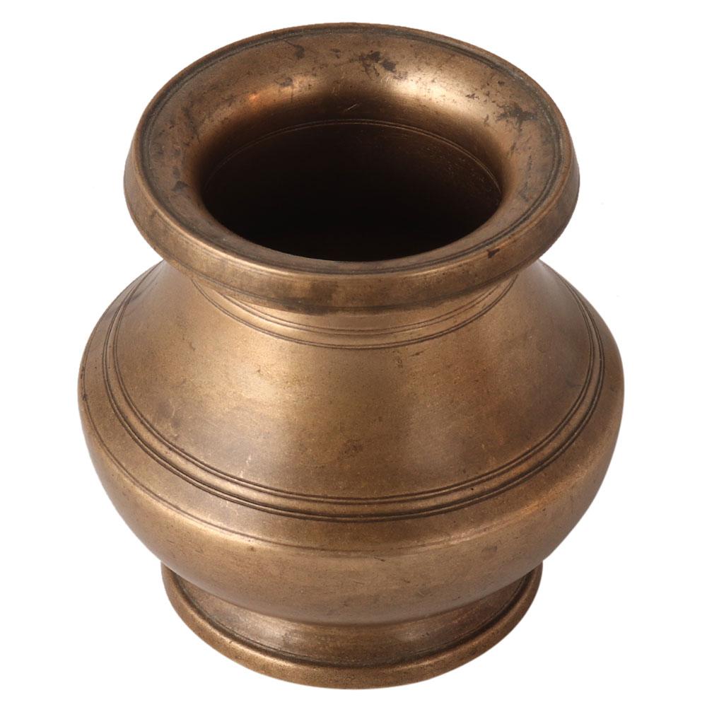 This Holy Water Pot is made of Brass alloy. Brass is an alloy of zinc and copper. It can be used for storing sacred water.