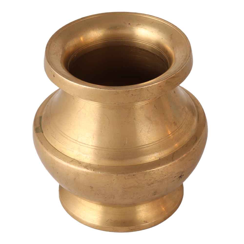 A South Indian holy water pot that will add an ethnic flair to your home and office. Its glamorous design and shiny gold finish set it apart from other water pots. Its unique design is an attraction and will be an eye-catcher for your visitors in your restaurant, hotel and store. Buy this handcrafted brass water pot made by skilled and experienced Indian workers. A fascinating find to display in your vintage art collection and a special gift for your mother, sister, brother, father, priest, friend or relative on special, festive or auspicious occasions.