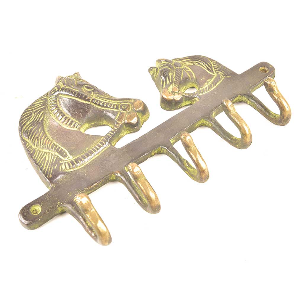 Vintage Solid Brass Rack / Holder / Hook / Hanger with A Horse Heads as A Design. the Hanger can be use as A Clothe Rack, Key Hanger, Ring Holder Etc. the Holder has Two Hooks. the Holder can be Attached to the Wall, with Two Screws.