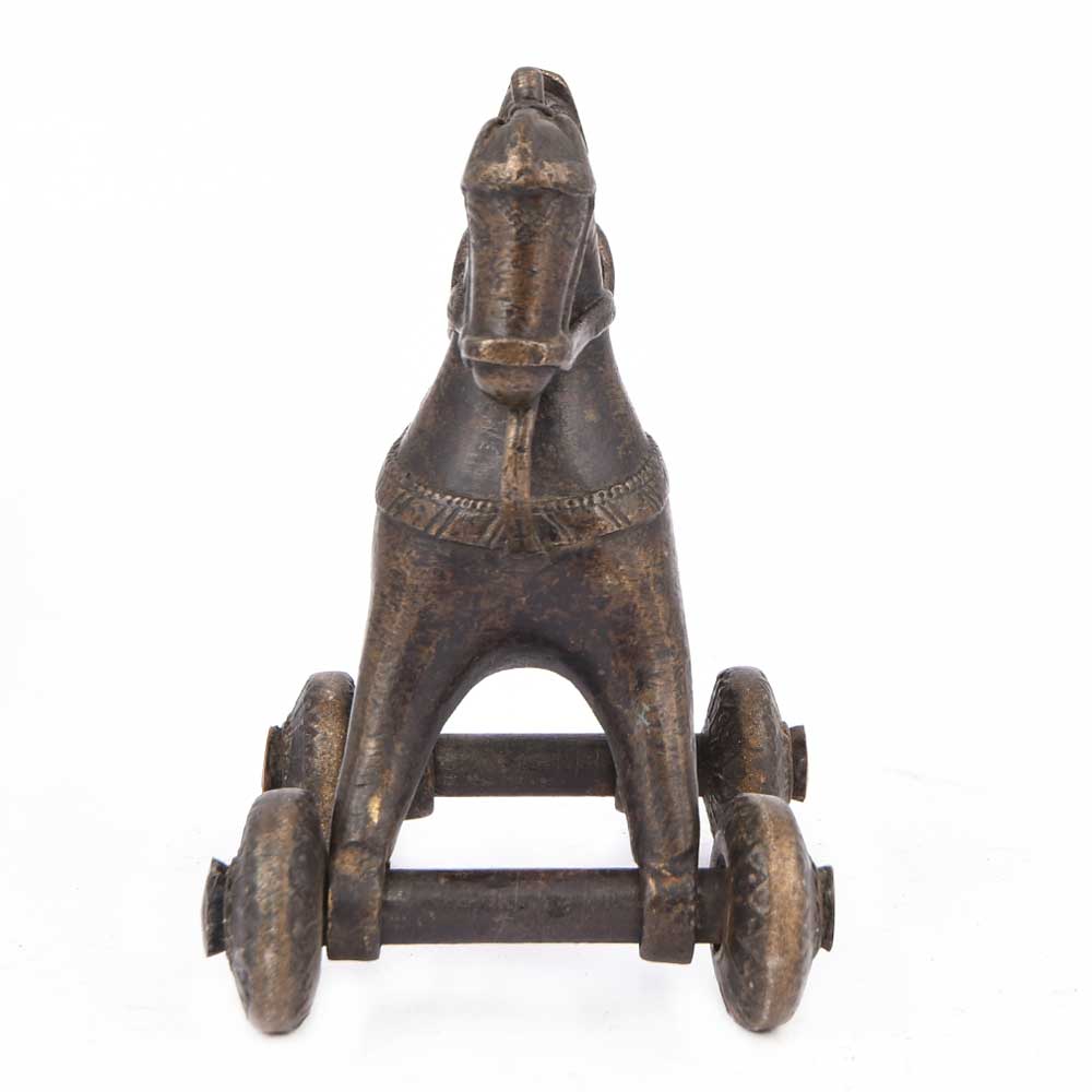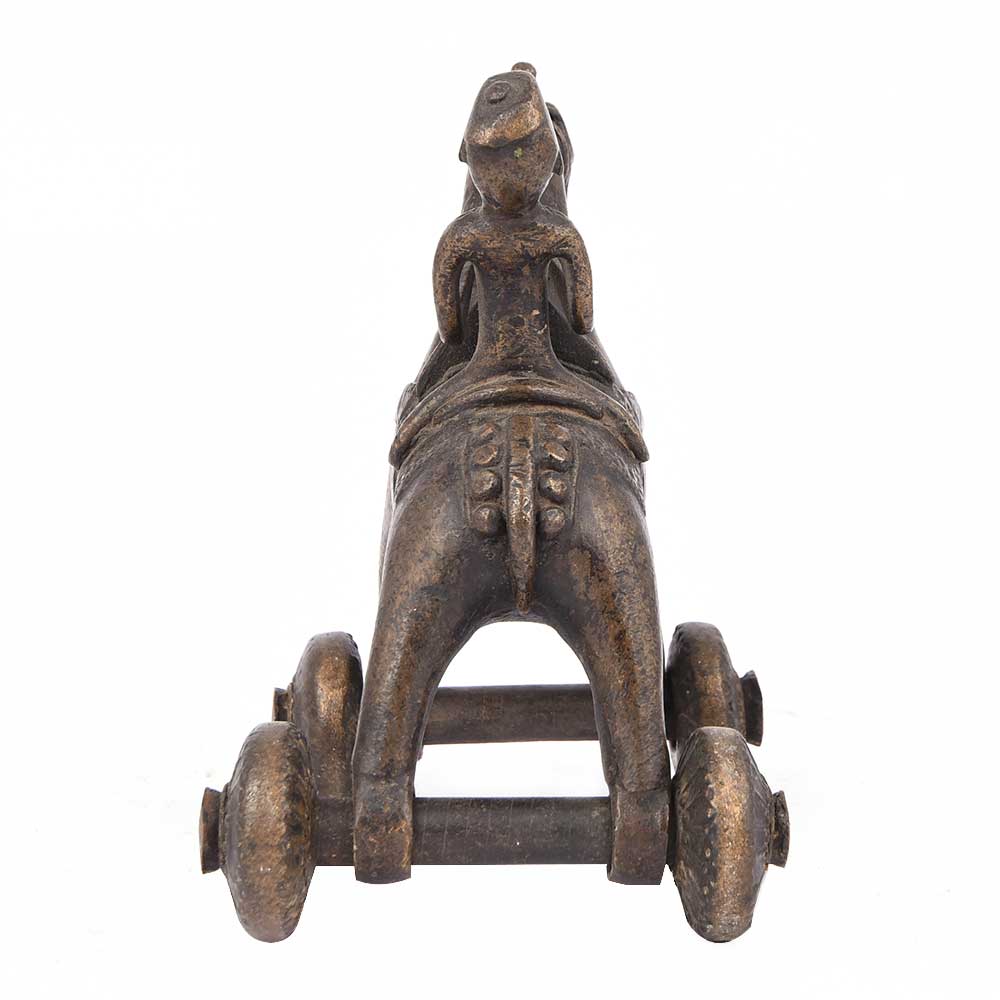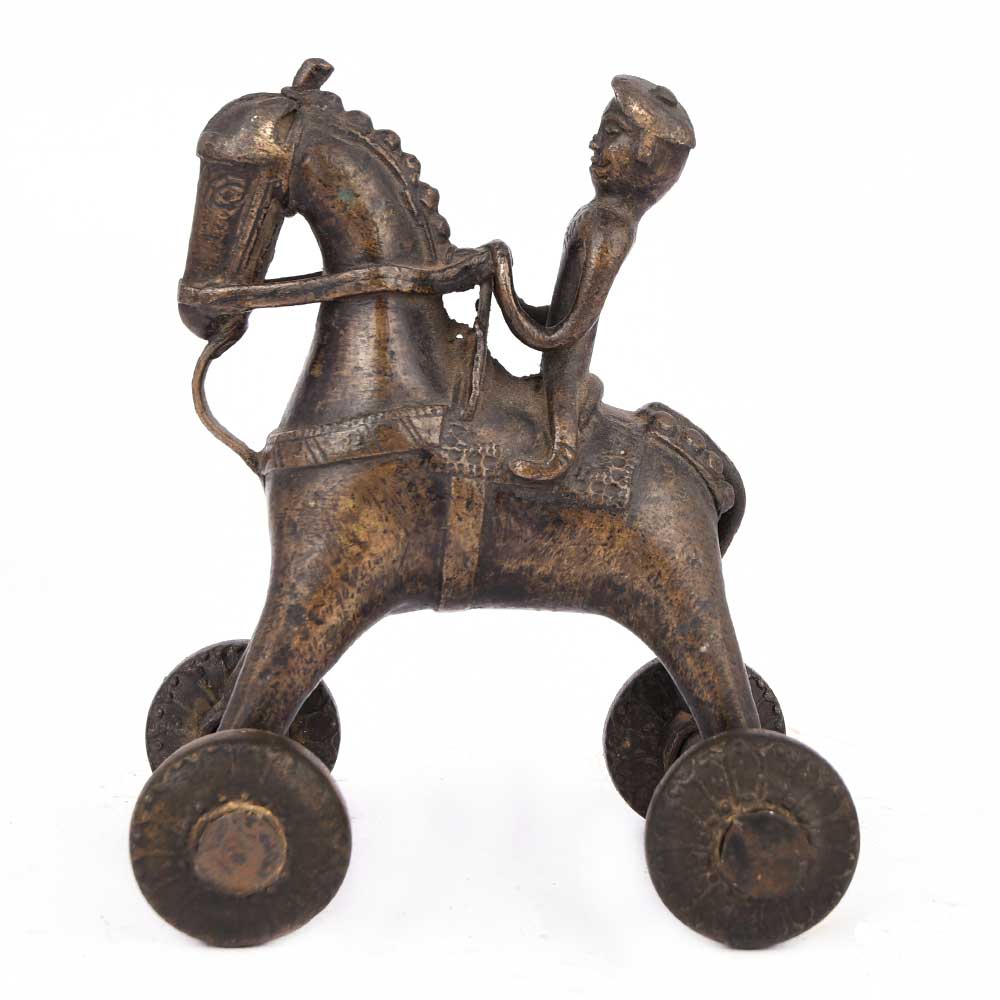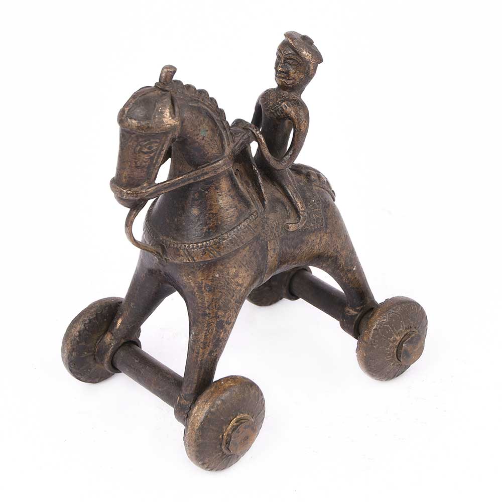 Vintage Brass Temple Toys with a Rider on a Horse Temple Toy with Wheels. These Toys Were Given to the The Children While Their Parents Were Busy with the Rituals of the Temple. It is Now Used as a Collectors Item and Gifting Item.
