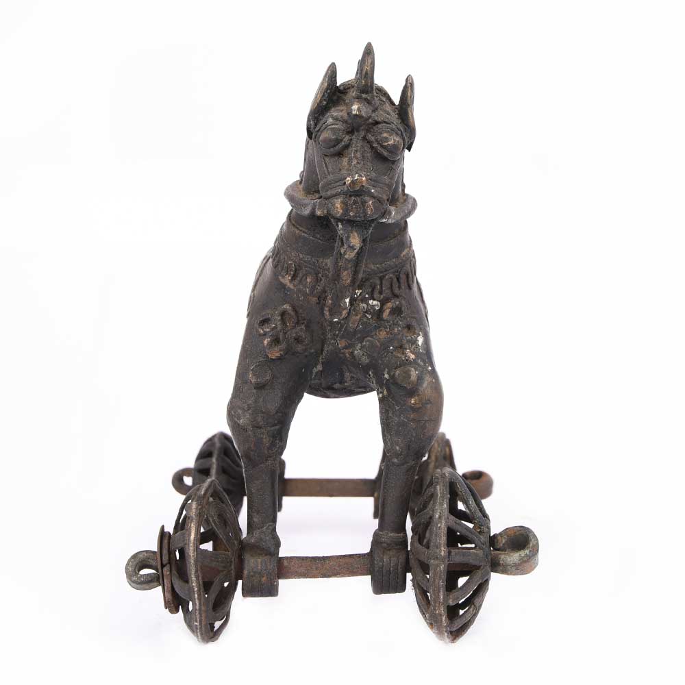 Very Old and Rustic Brass Temple Toy Made with Brass Using the Traditional Methods of Craftsmen of the Local Tribe Now Looks Old and Black Due to Wear and Tear Used as a Home Dacor.