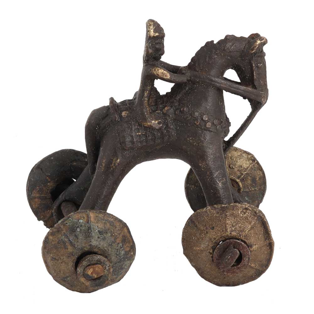 Brass Horse Temple Toy With Rider On Wheels are What Their Name Conveys, Used in Temples for Prayer (And Quite Possibly for the Benefit of Children as Well). Many Variations Can Be Found, From Large, Elaborate Coaches Pulled by Elephants, to Simple Animals or Animals with Riders in Many Sizes.