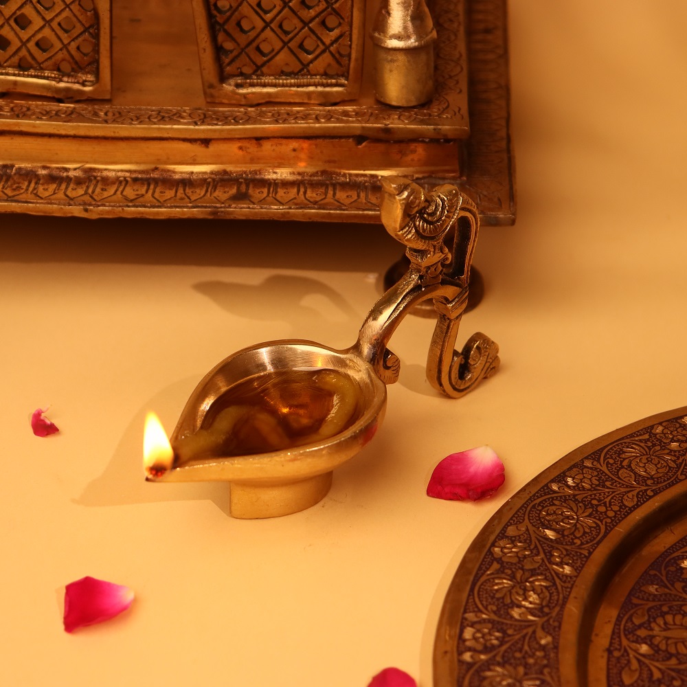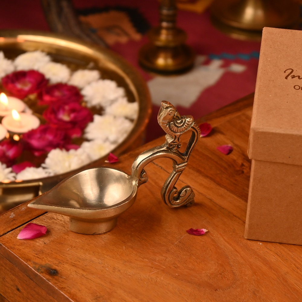 Elevate your Diwali celebrations with this exquisitely handcrafted Brass Indian Peacock Holding Diya. This eye-catching piece features a regal peacock gracefully holding a traditional diya, making it a perfect addition to your home decor during the festive season. Its detailed design and warm brass finish bring a sense of luxury and celebration to your surroundings.