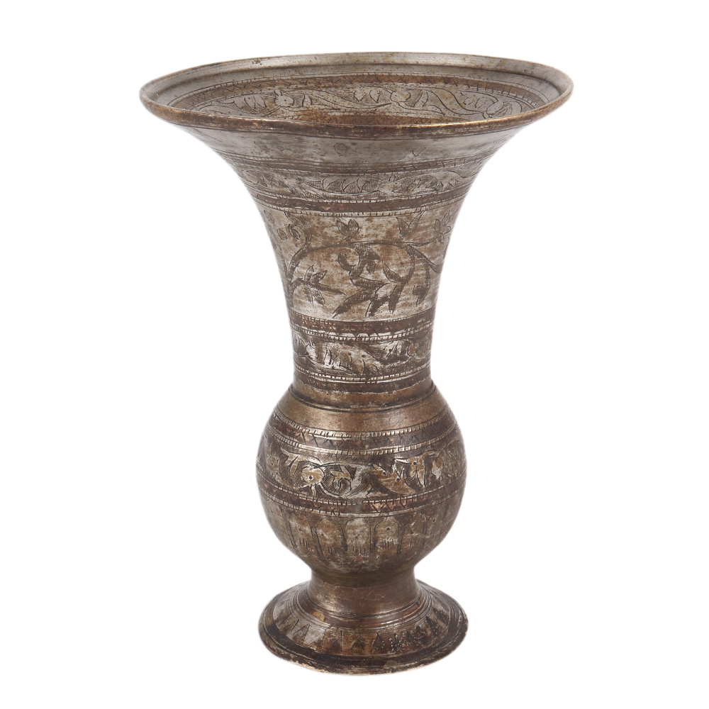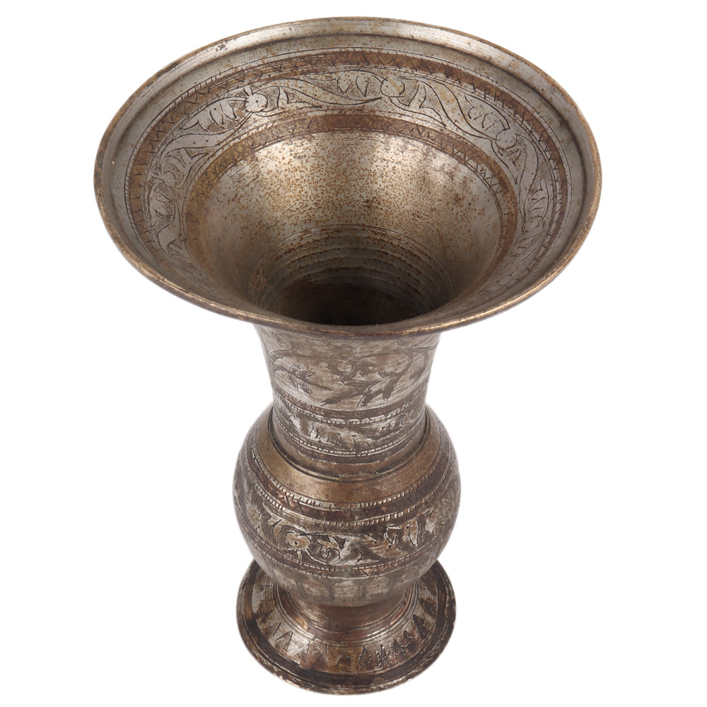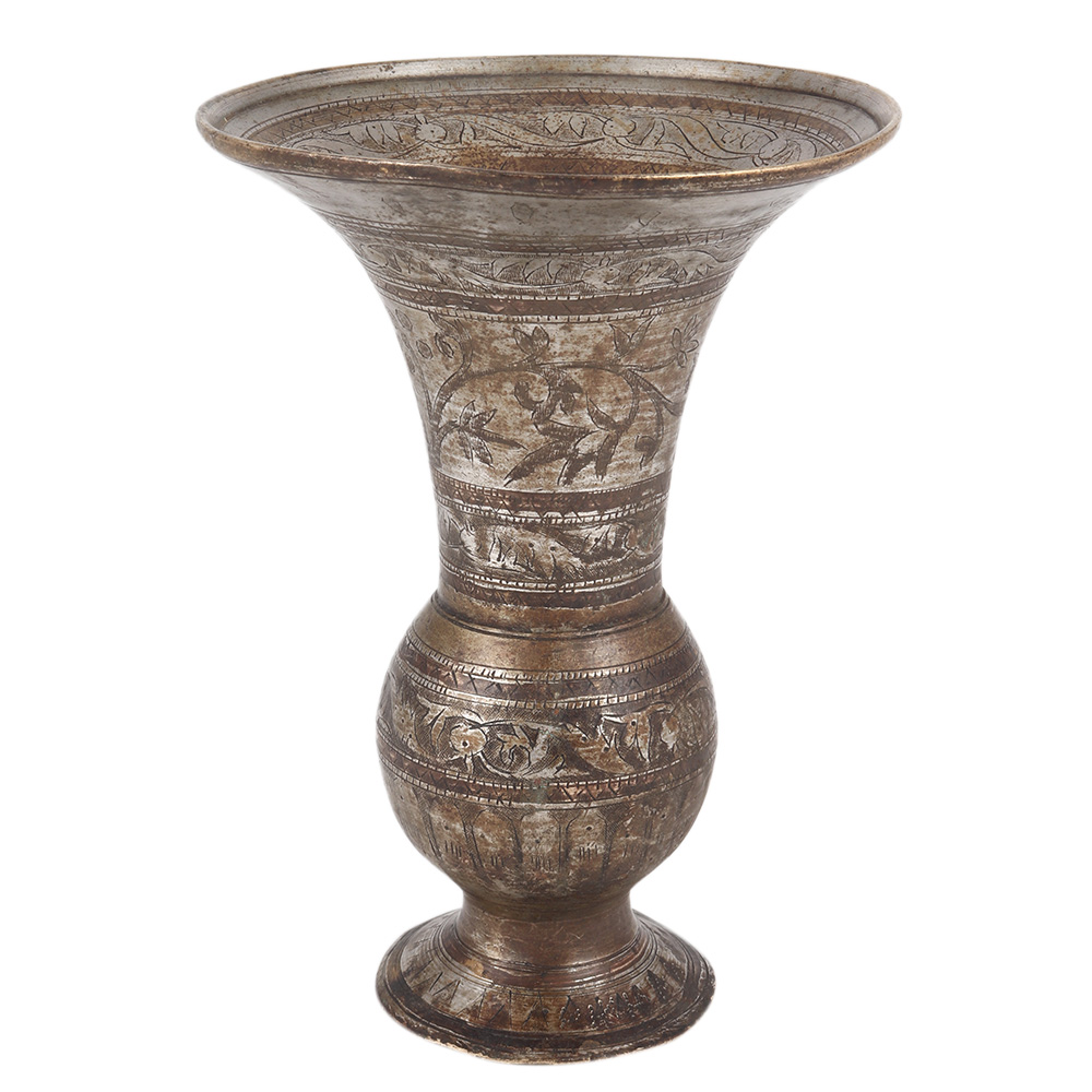 This antique brass eastern muslim style vase with carved design is incredibly appealing and eye-catching. It is ideal for weddings, anniversaries, housewarmings, new ventures, award ceremonies, and other special occasions.