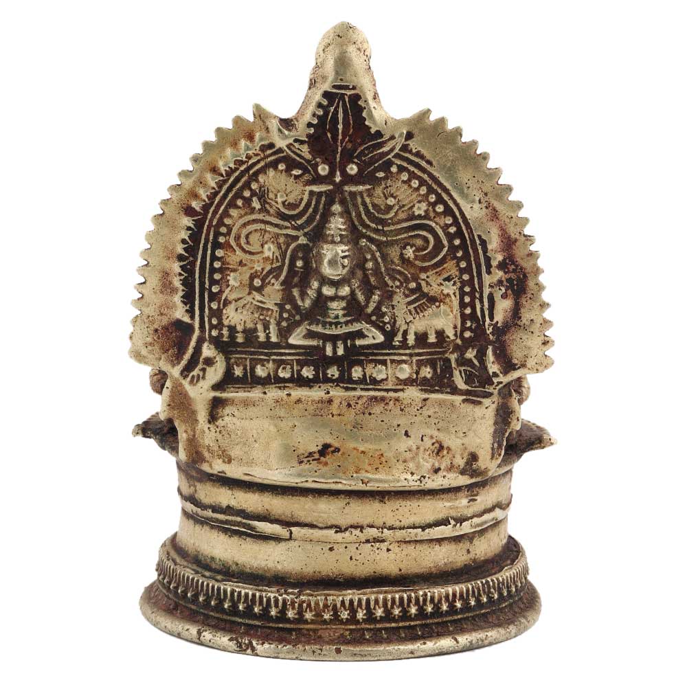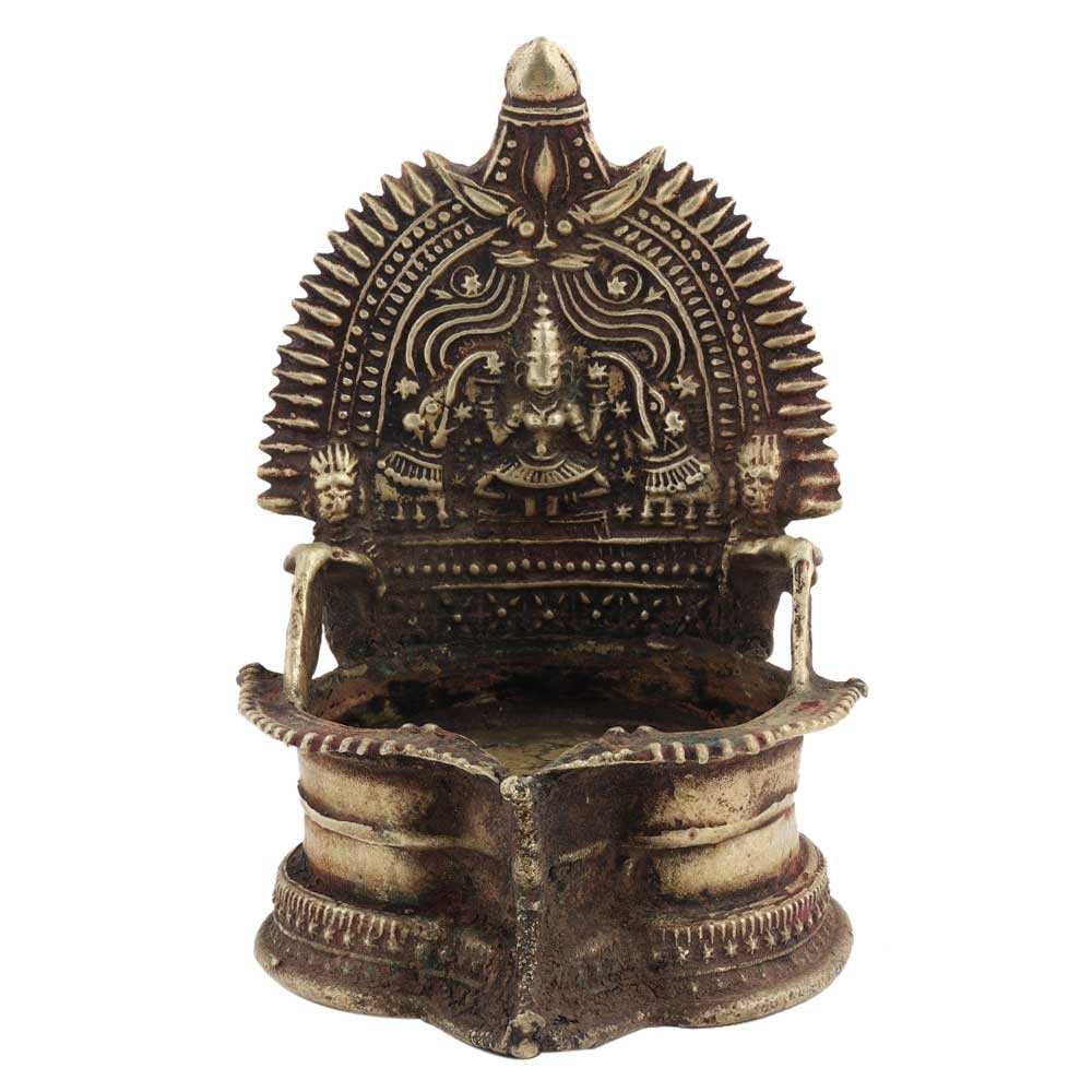 Brass Kamakshi Oil Worship Lamp . It is made by lost wax process. Adds spiritual flavor to your decor. Vegetable oil, mustard oil or desi ghee can be used to light the lamp with cotton wicks.