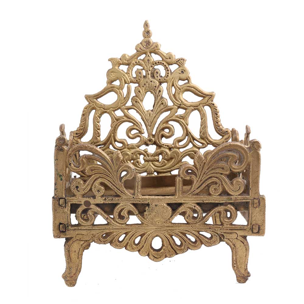 Carved handmade brass Krishna bed or singhasan from Banaras made by the local craftsmen of India . It is often used as a decoration in temples , pooja ghar or other places of worship. Wedding gift, Diwali gift, stage decoration gift it to your near ad dear ones.