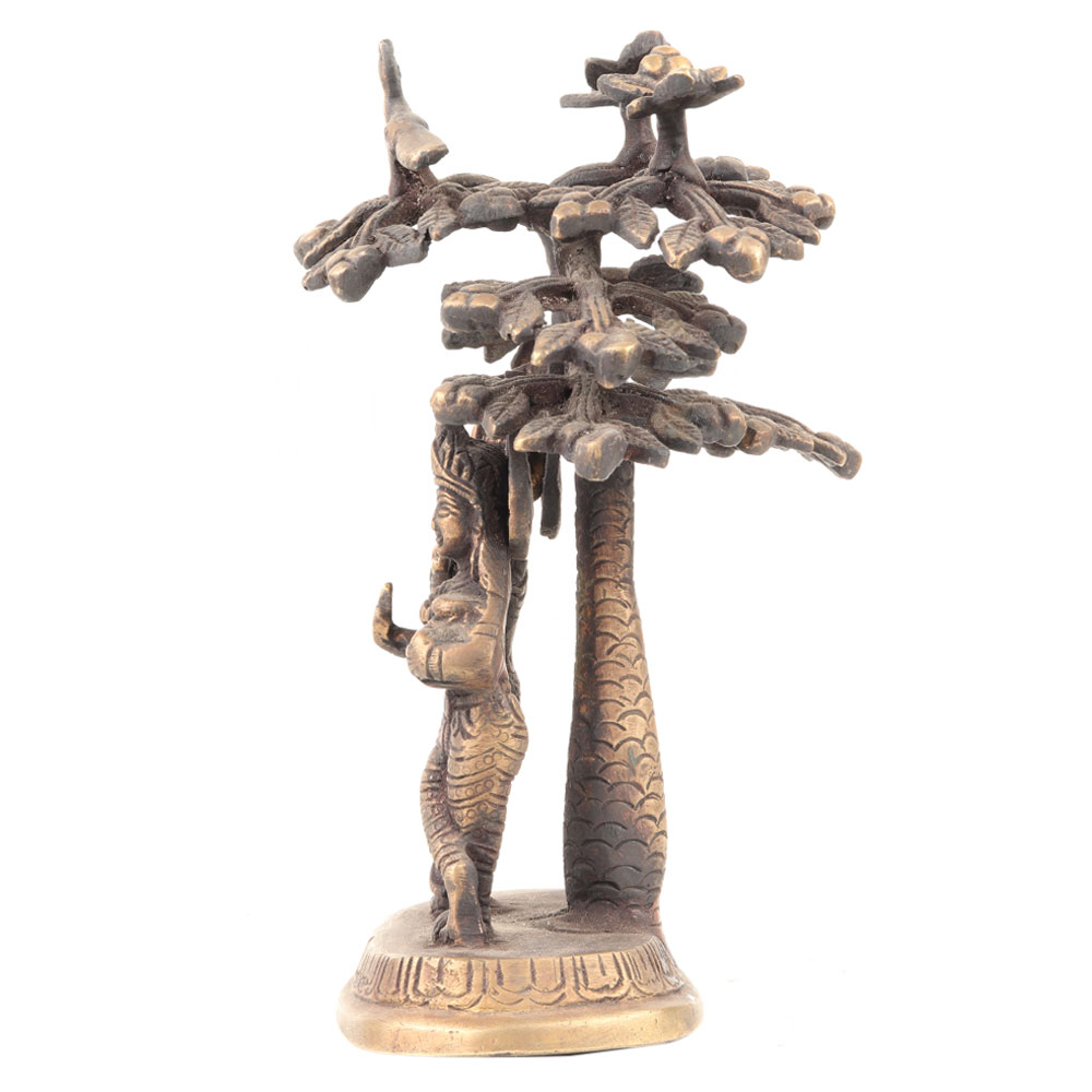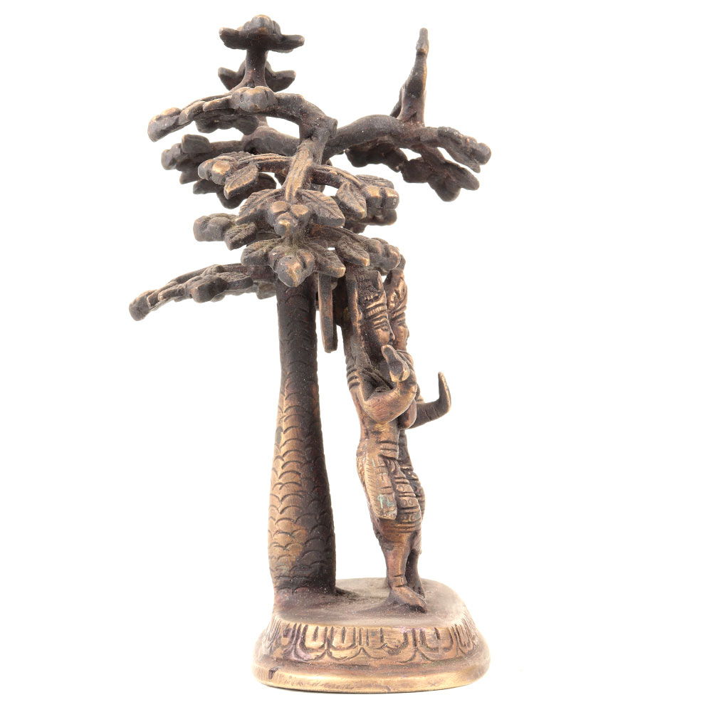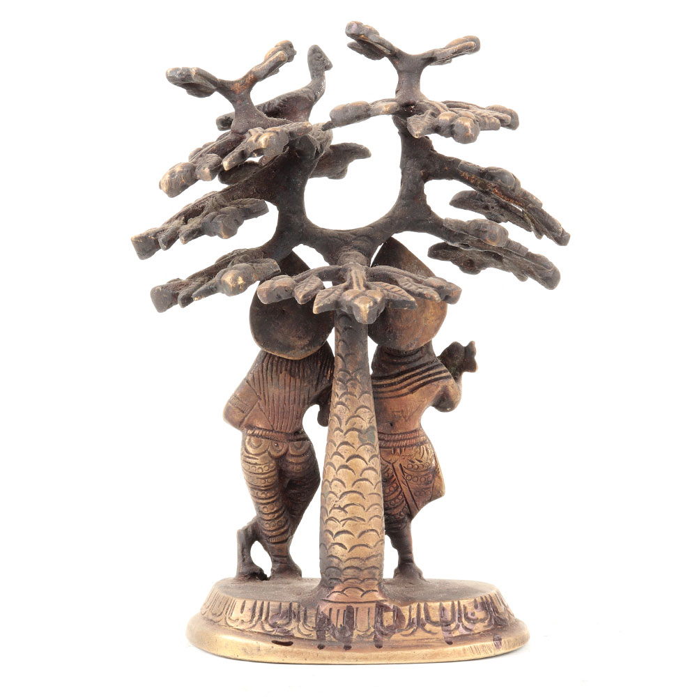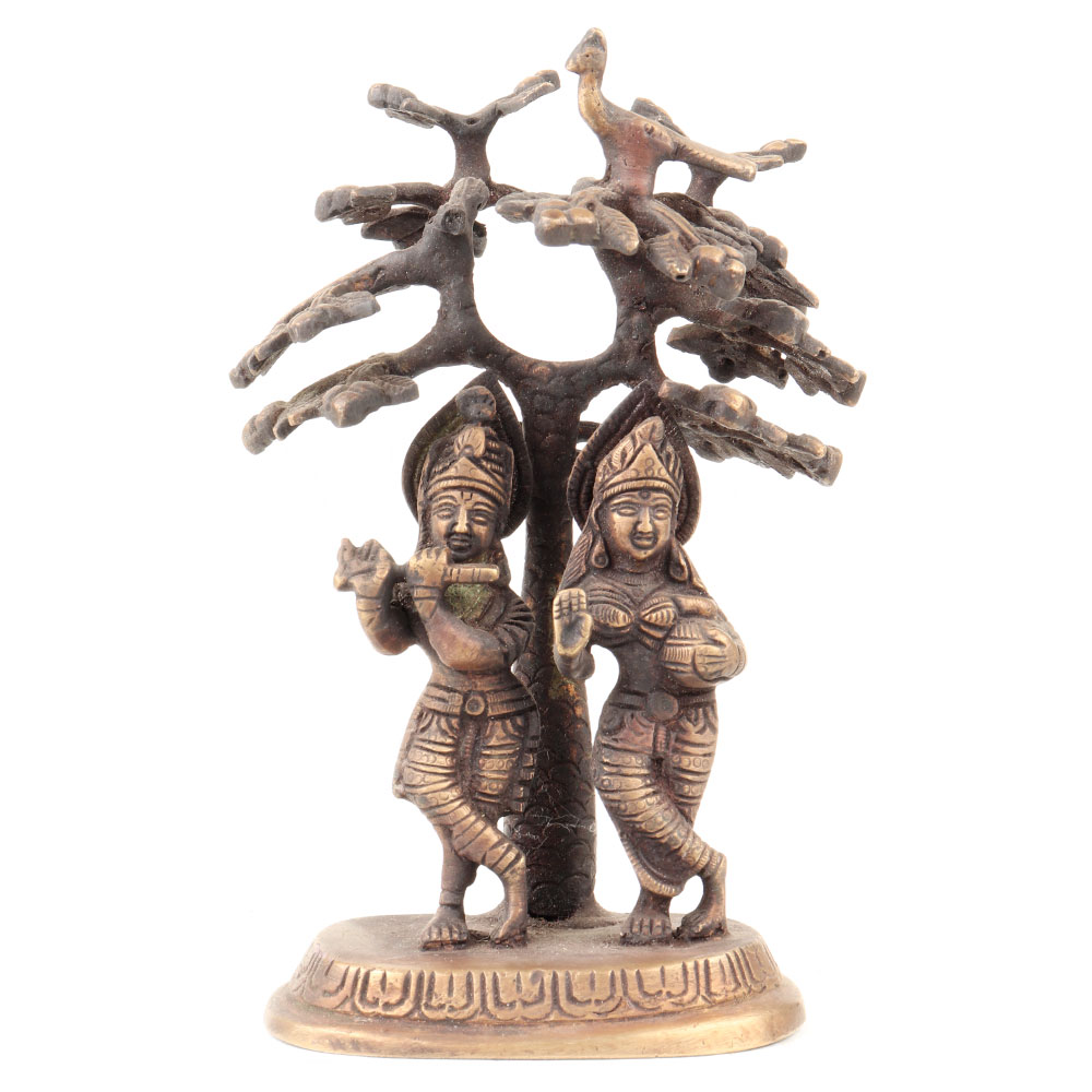 Hindu art Lord Krishna playing his favorite flute and radha holding wager pot standing under the holy Kadamba tree. An ideal decorative statue for your living room and ideal gifting statue for weddings and Denali