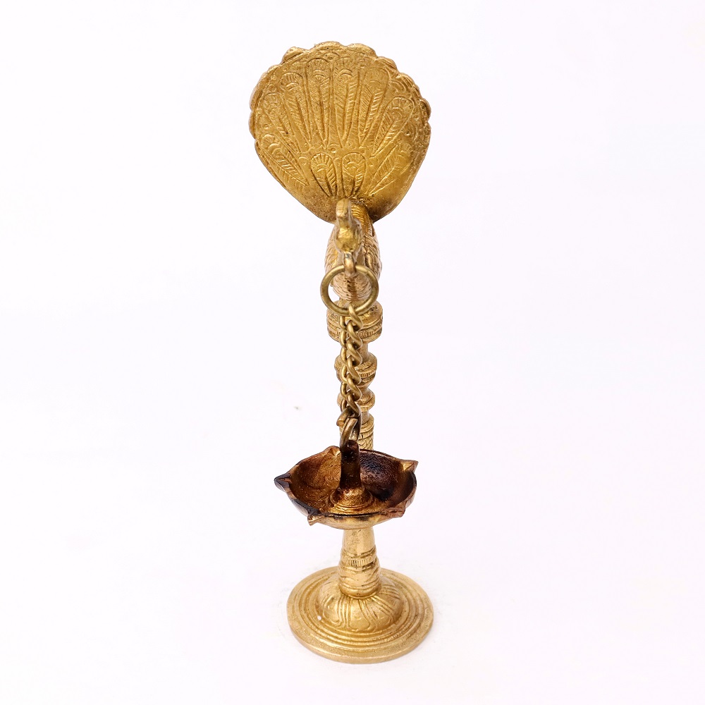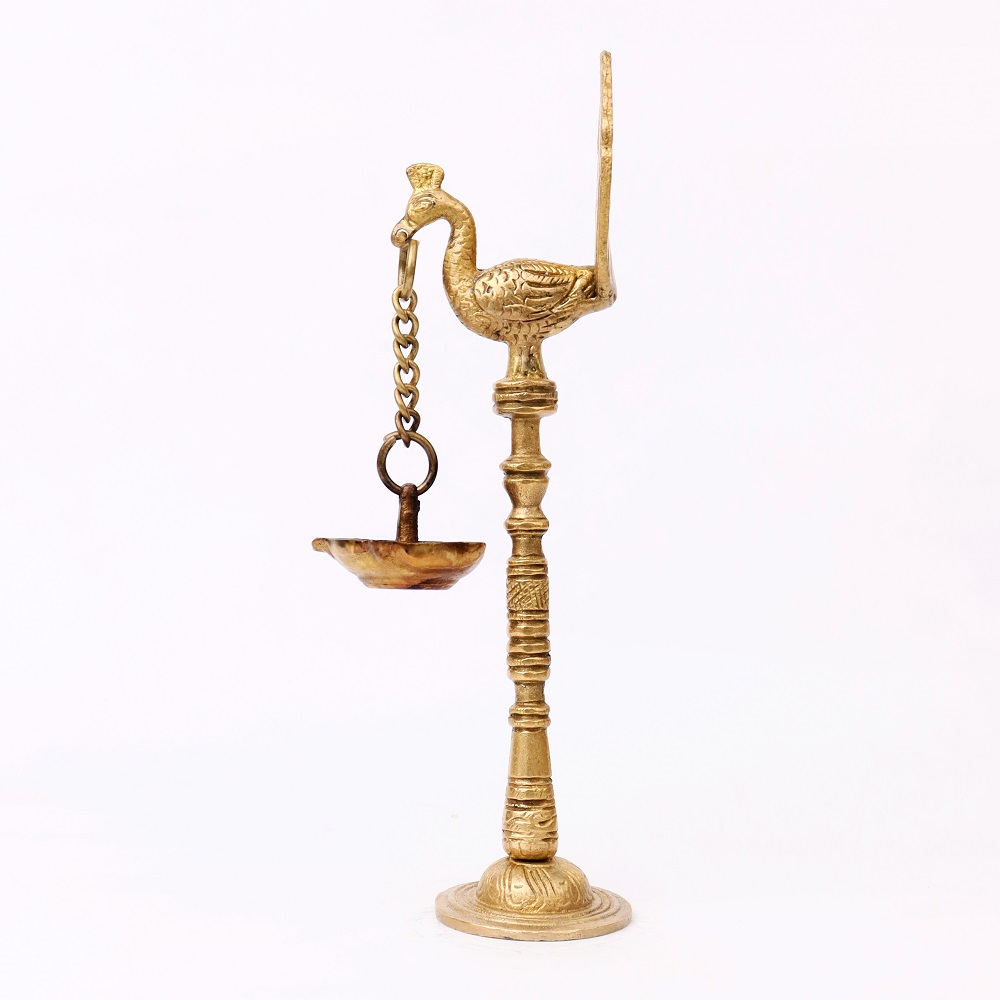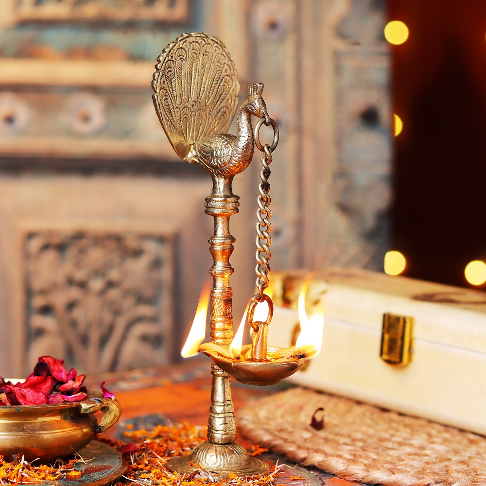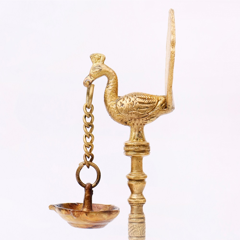 Even when not in use, this Brass Kuthu Villaku lamp serves as an exquisite decorative item. Its stunning peacock design and traditional style add a touch of regal beauty to any room. Whether displayed in the living room, pooja room, or hallway, this lamp becomes a focal point that enhances your home’s cultural ambiance.